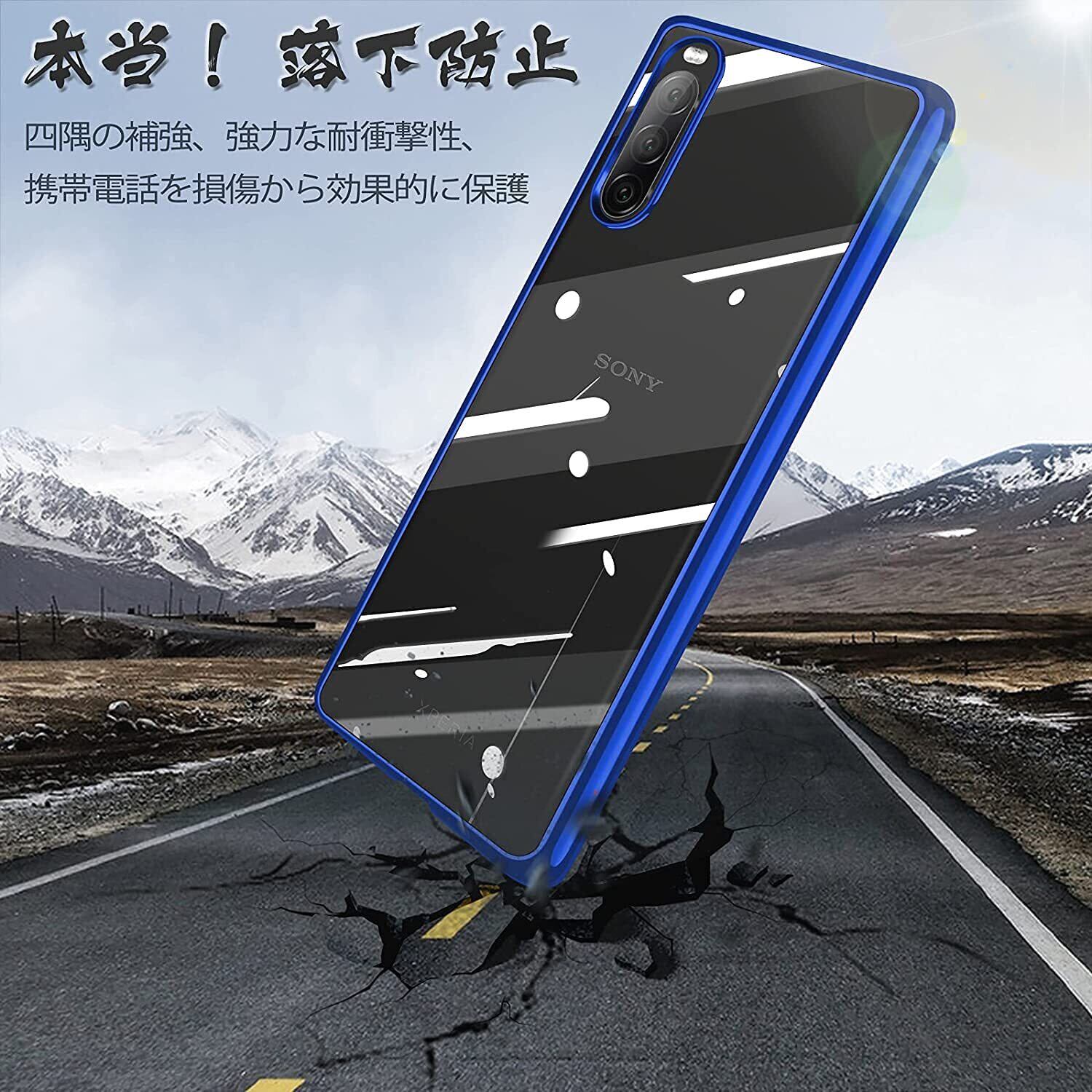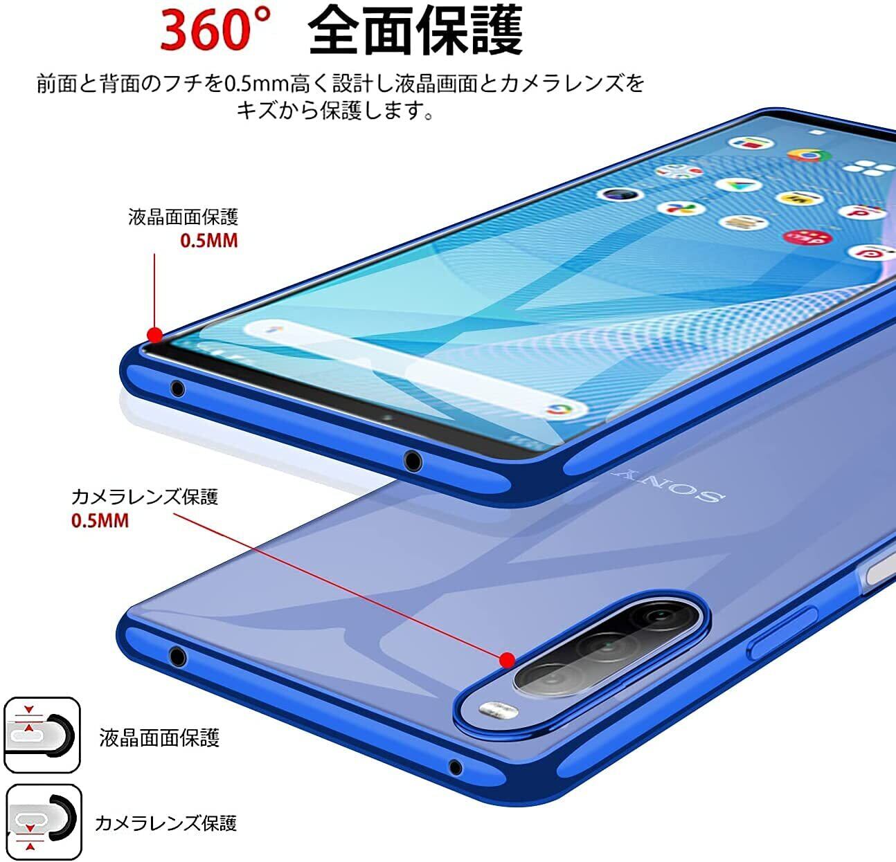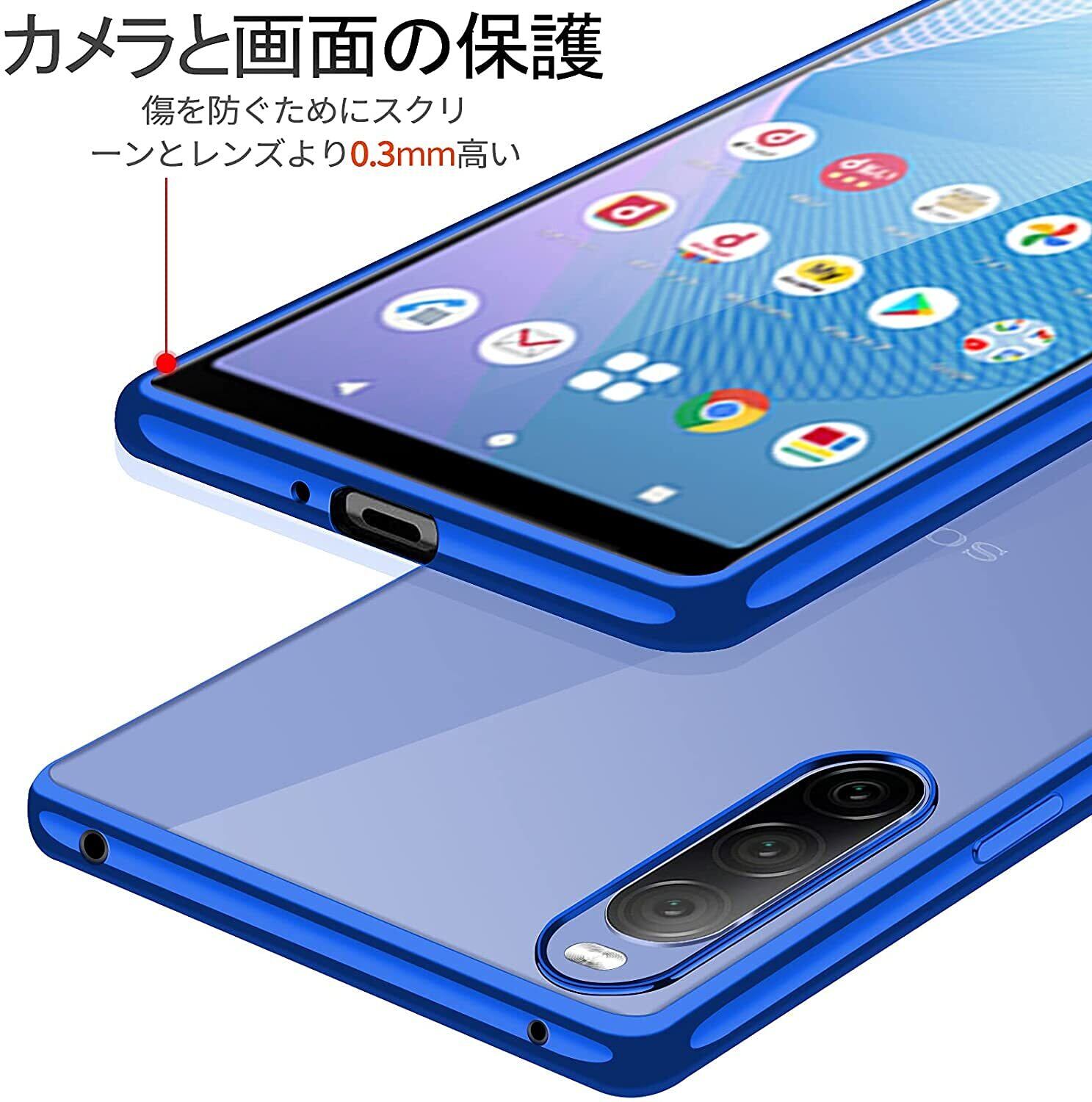 Xperia 10 III/Xperia 10 III Lite ケース クリア SO-52B スマホケース SOG04 / XQ-BT44 ソフト tpu 薄型 透明 背面クリア 青縁 メッキ加工 エスクペリア10III ストラップホール付き 超軽量 耐衝撃 カバー ブルー