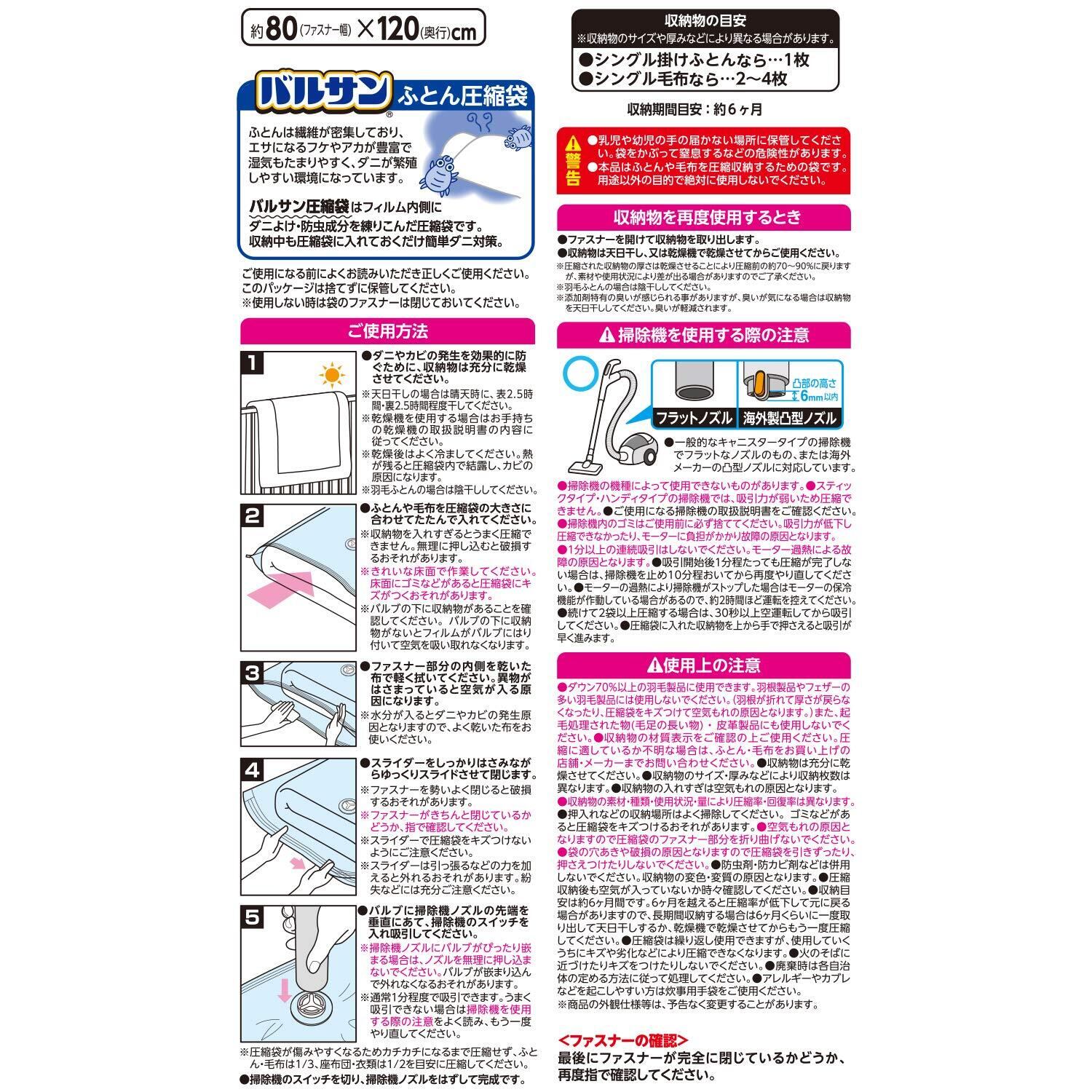 バルサン ふとん圧縮袋 M シングル布団用 2枚入 (ダニよけ 防虫 Wパワー) 80×120cm