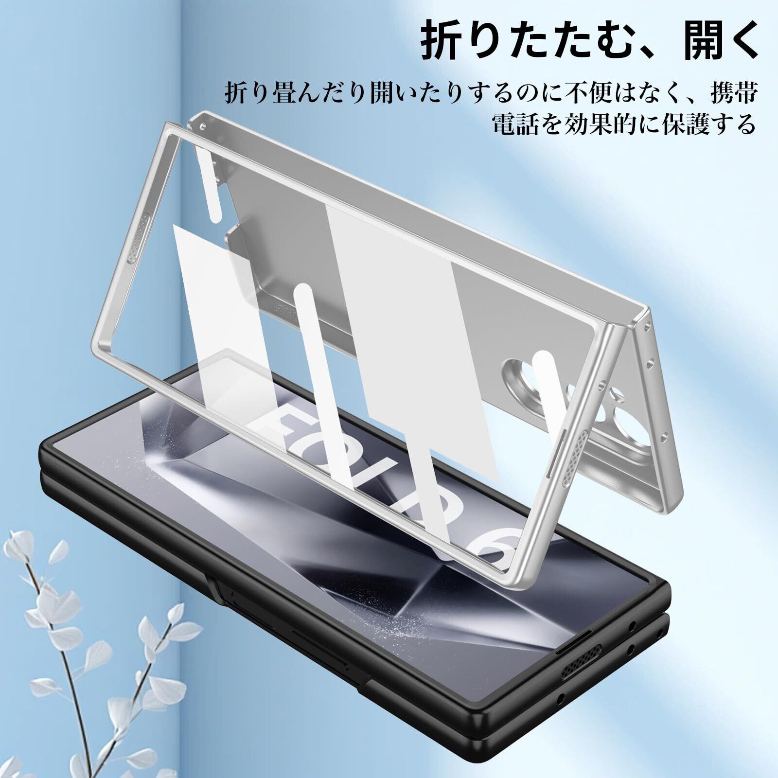 For Galaxy Z Fold6 ケース ヒンジ保護 ギャラクシー Z Fold6 用 スマホケース Greerass 一体型スクリーンフィルム カメラレンズ保護 耐衝撃 ワイヤレス充電対応 軽量 薄型 おしゃれ 人気 (シルバー)