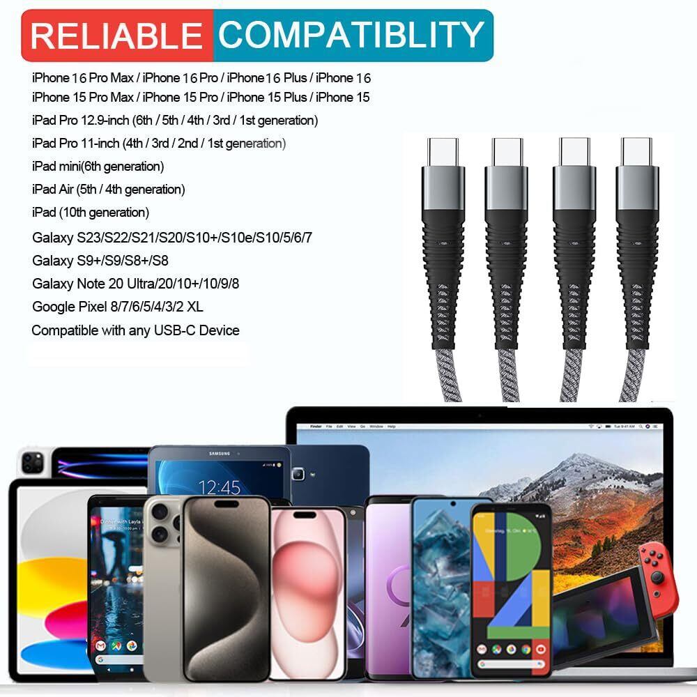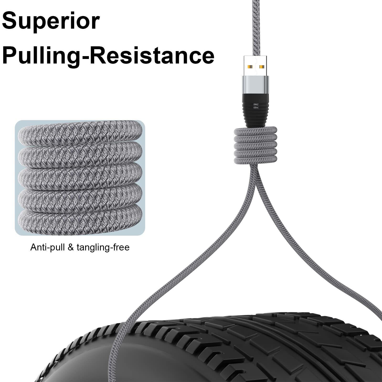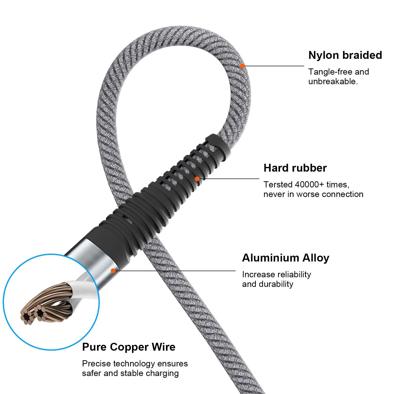 【強化された耐久性】: 最も柔らかく、強く、耐久性のある素材である強力な繊維により、引張力が 200% 増加します。 10,000回以上の曲げテストに耐えることができます。 高品質のアルミニウムシェルによりケーブルの耐久性が向上し、ナイロン編組タイプC充電ケーブルにより、絡まりなく耐久性が向上します。