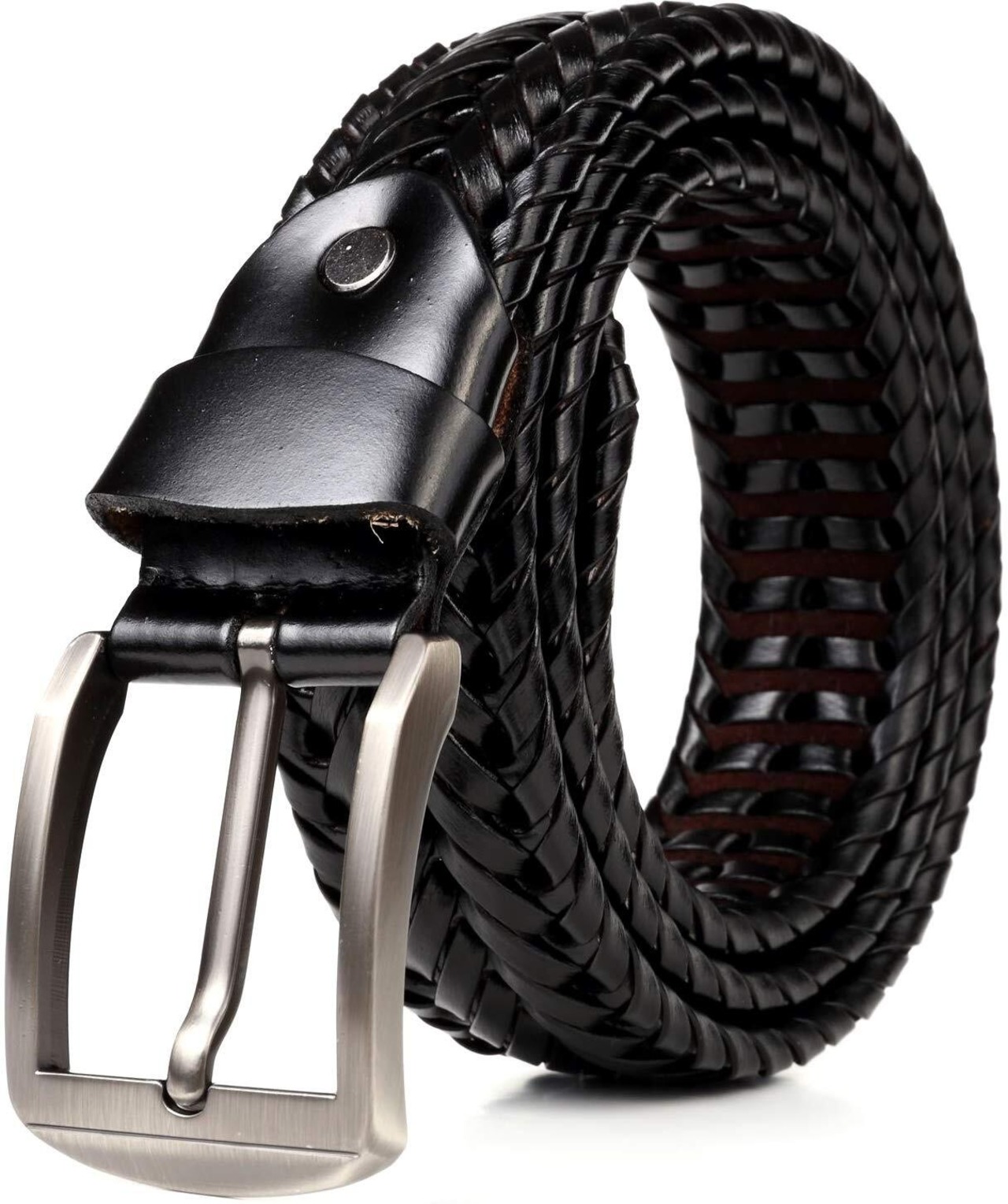 [JINSELF] ドイツレザー メッシュ ベルト メンズ 革 バックル カジュアル ビジネス 編み込み ブラック ダークシルバー