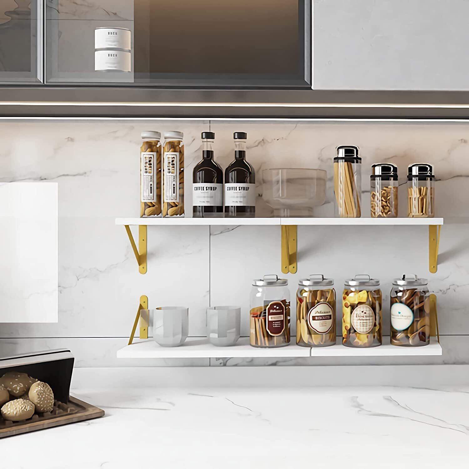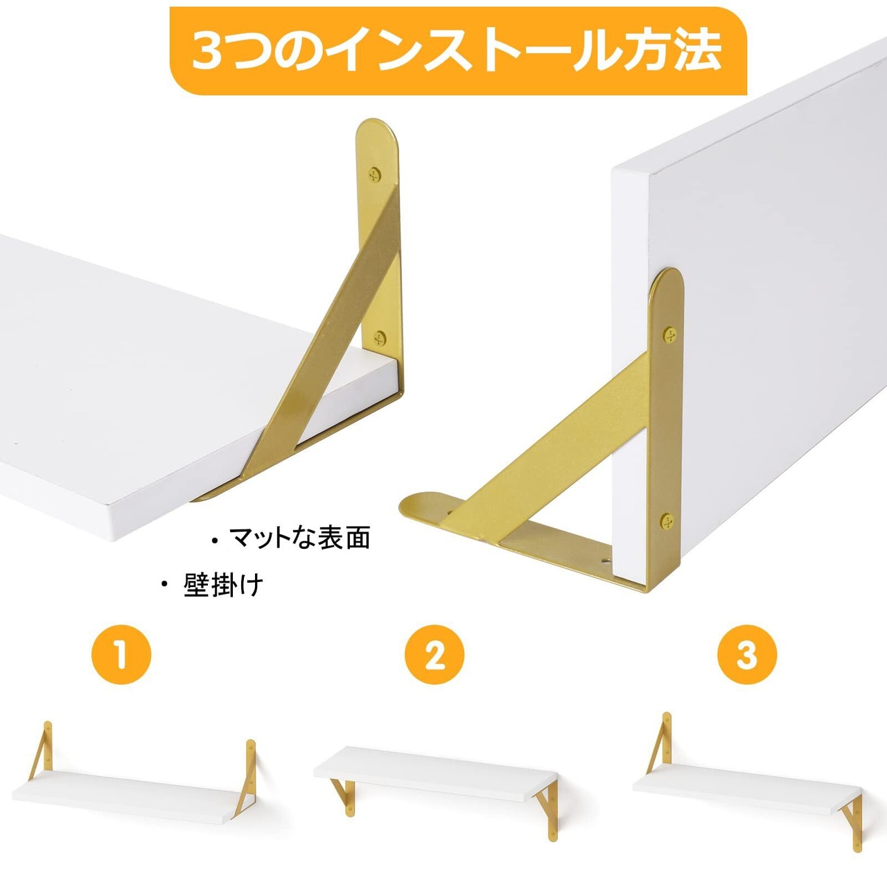 HASONA ウォールシェルフ 3個セット 壁掛け棚 壁 棚 ラック おしゃれ 天然木製 ウォールラック 飾り棚 玄関/キッチン/トイレ/洗面所/寝室 取り付け簡単 ホワイト-ゴールド