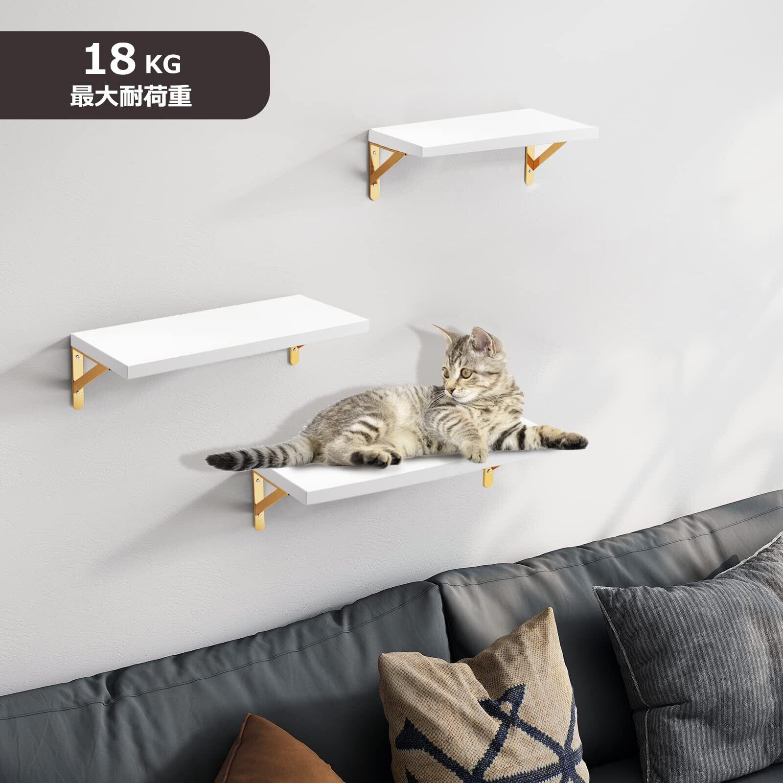 【優れた耐荷重】壁掛け棚1枚の最大耐荷重は18kgです。リビング、玄関、寝室、キッチン、トイレ、洗面所、オフィスなどに小物を収納するのに大活躍!キャットウォークとしての使用にも最適です。支持力はウォールシェルフを固定する壁によって決まります。中実の壁はより効果的です。