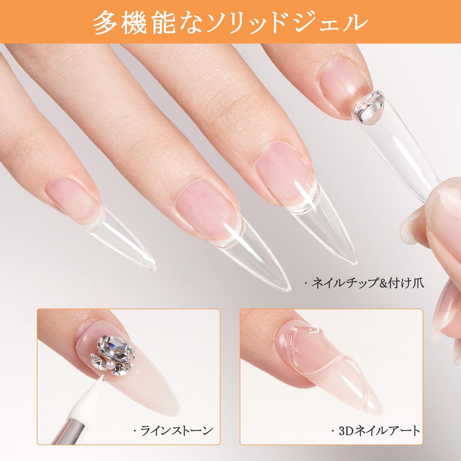 【多機能なソリッドジェルネイルグルー】:Missgooeyのソリッドネイルジェルは、あらゆる種類のネイルチップに対応し、付け爪、ネイルチップ、アクリルネイルの接着剤として使用できるだけでなく、ラインストーン接着剤としてネイルジュエリーや3Dネイルアートにも使用できます。全てのネイルアートのニーズに応えます。