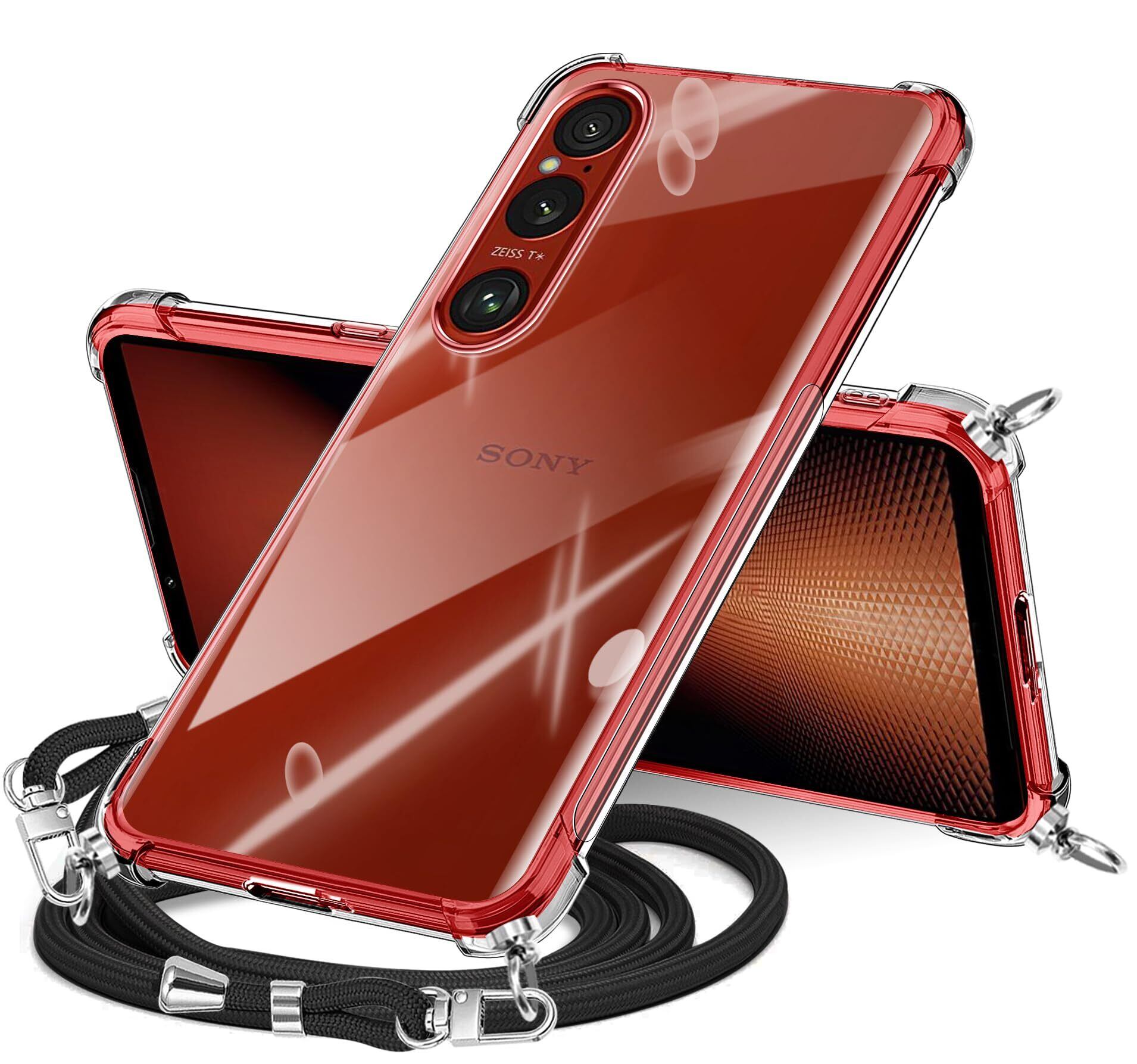 SONY Xperia 1 VI ケース クリア ショルダー sony xperia1vi SO-51E SOG13 スマホケース エクスペリア 1VI カバー 肩掛け 斜めかけ 縄掛けケース 透明 TPU 耐衝撃 薄型 軽量 ケース 紐付き 斜めがけ 織りストラップ付き ネックストラップ ショルダー 長さ調整可能 取り外し可能 落下防止 紛失防止 (クリア)