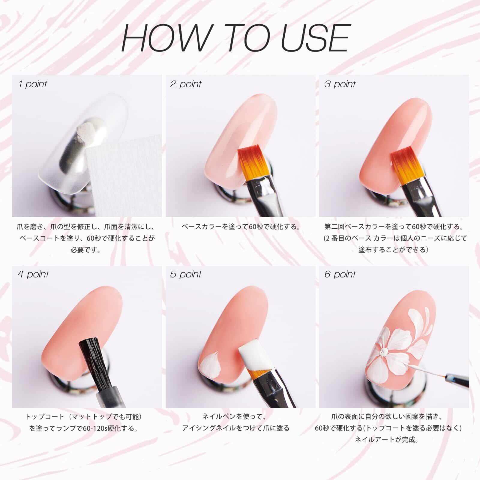 使いやすさ:自宅DIY&サロンネイル: ペンのボディは軽量で快適で、持ちやすくペイントしやすいです。また、ネイルペインティングブラシセットは毎日の使用に耐久性があり、プロのサロンや家庭でのDIYネイルアートに最適で、ネイルのベテランや初心者にも適します