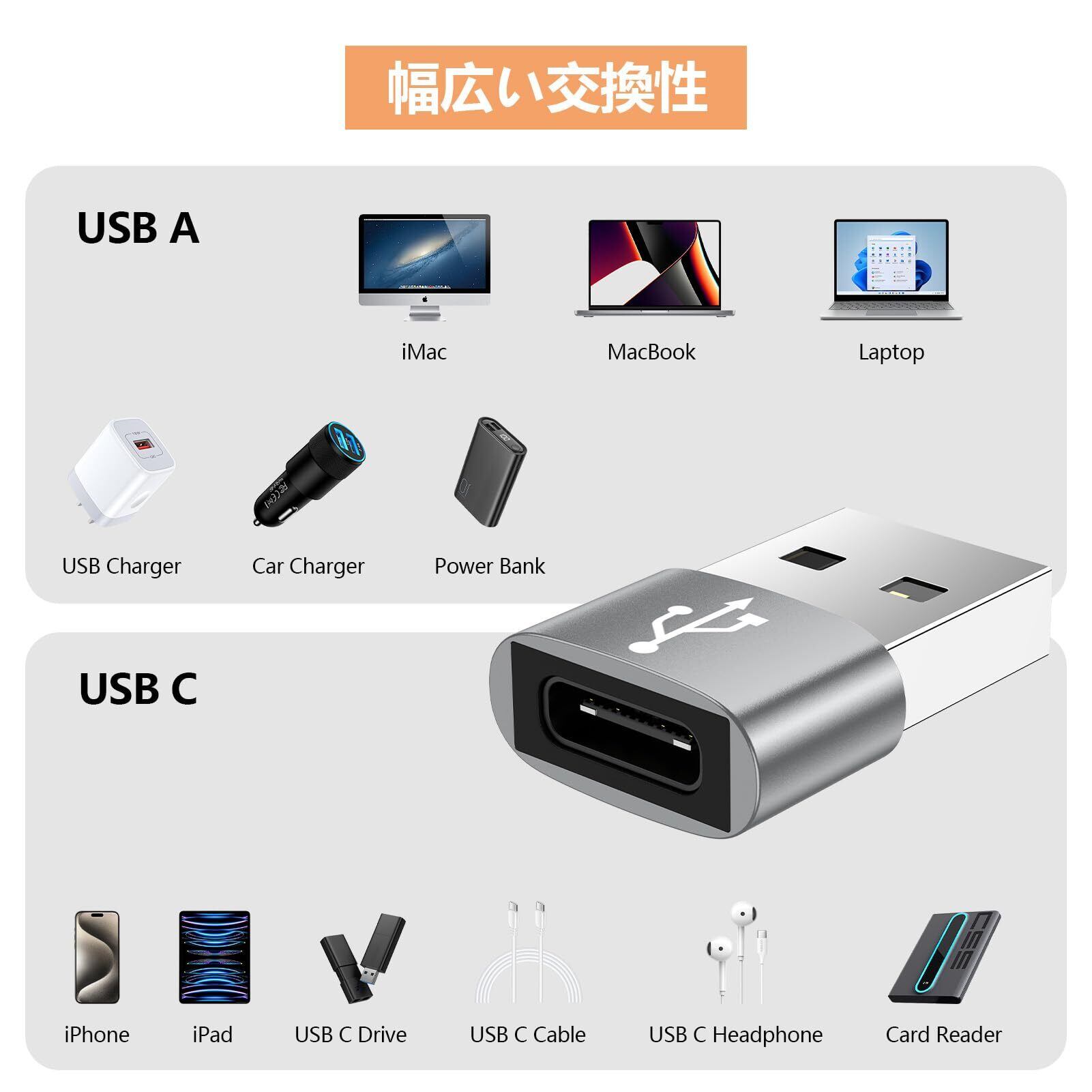 【USB Cメス-USB Aオスアダプタ】USB AのPCポートまたはACアダプタに、スマホ、HDD、またはその他のUSB-Cデバイスを接続し、高速充電とデータ転送両方可能です。