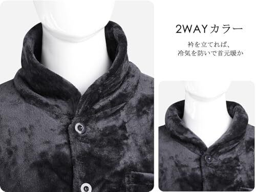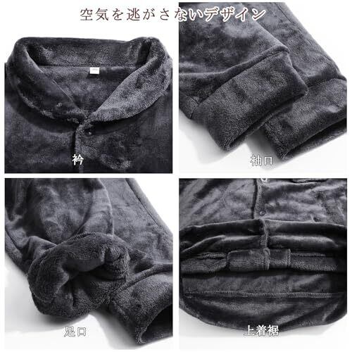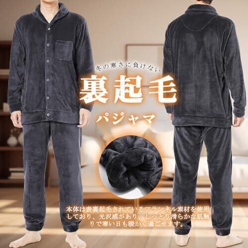 [レコーン] パジャマ メンズ もこもこ ルームウェア 冬 裏起毛 タートルネック 前開き 長袖 上下セット フランネル 部屋着 着る毛布 防寒 厚手 暖かい ゆったり 秋冬