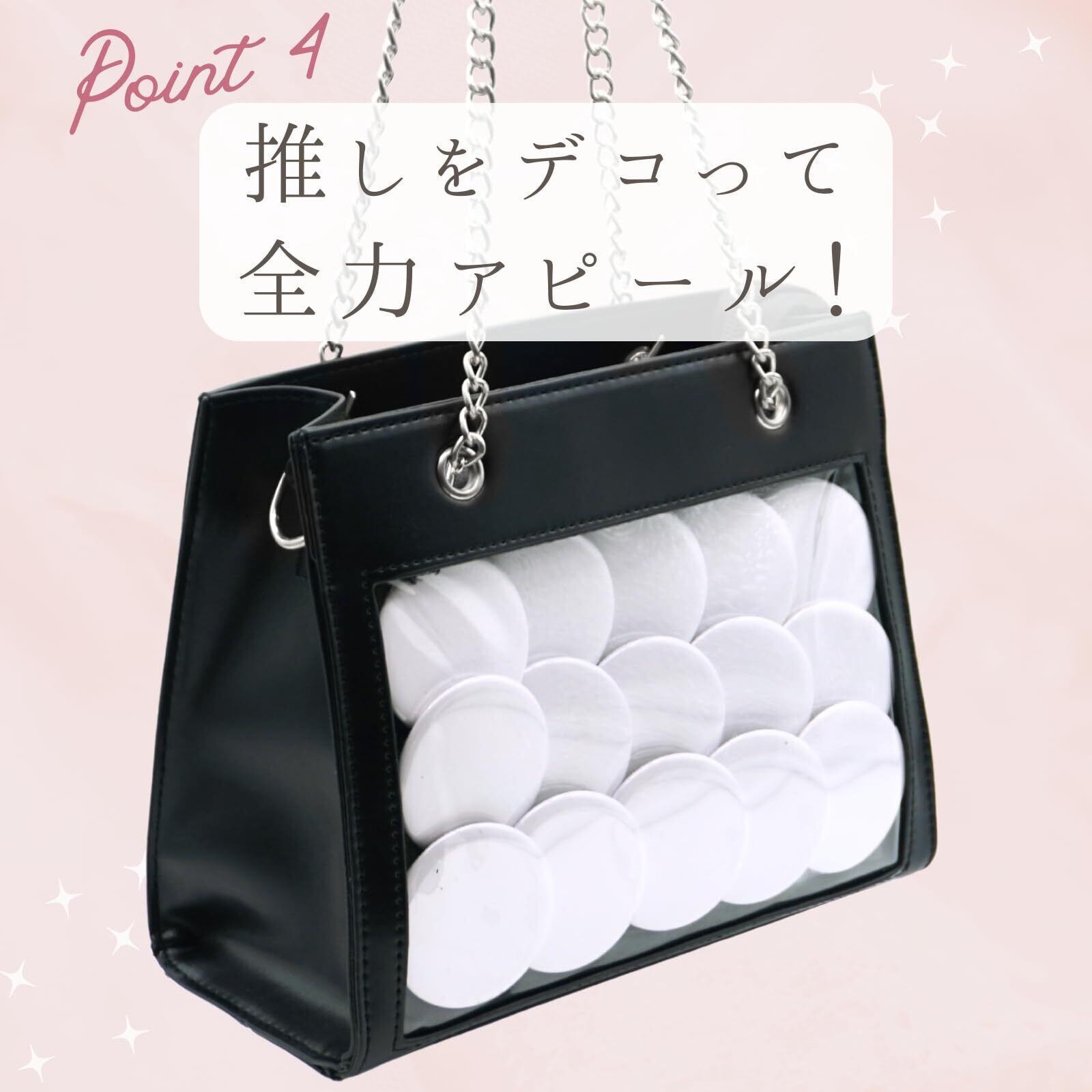 少し小さめの痛バックをお探しの方にピッタリの商品です。レザー調の素材を使っており、可愛さに上品さをプラス