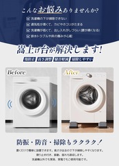 【掃除しやすい】洗濯機の下側に排水口がくる場合では排水ホースのスペースが確保できます。また、家電や家具をかさ上げ、湿気から守って、掃除も快適になれます。家庭用洗濯機、ドラム式洗濯機、冷蔵庫、ソファー、テーブル、ベッド、机等に最適です。