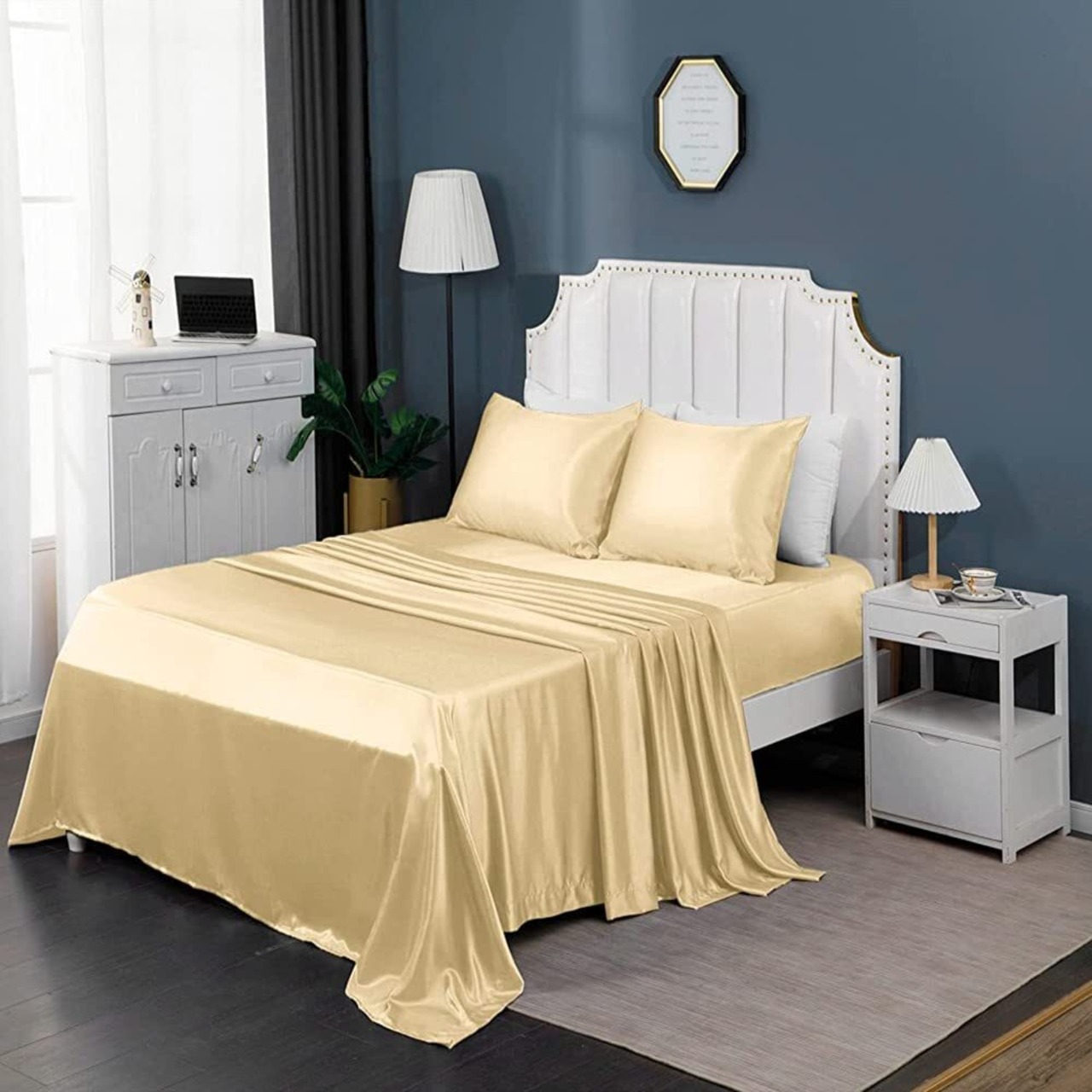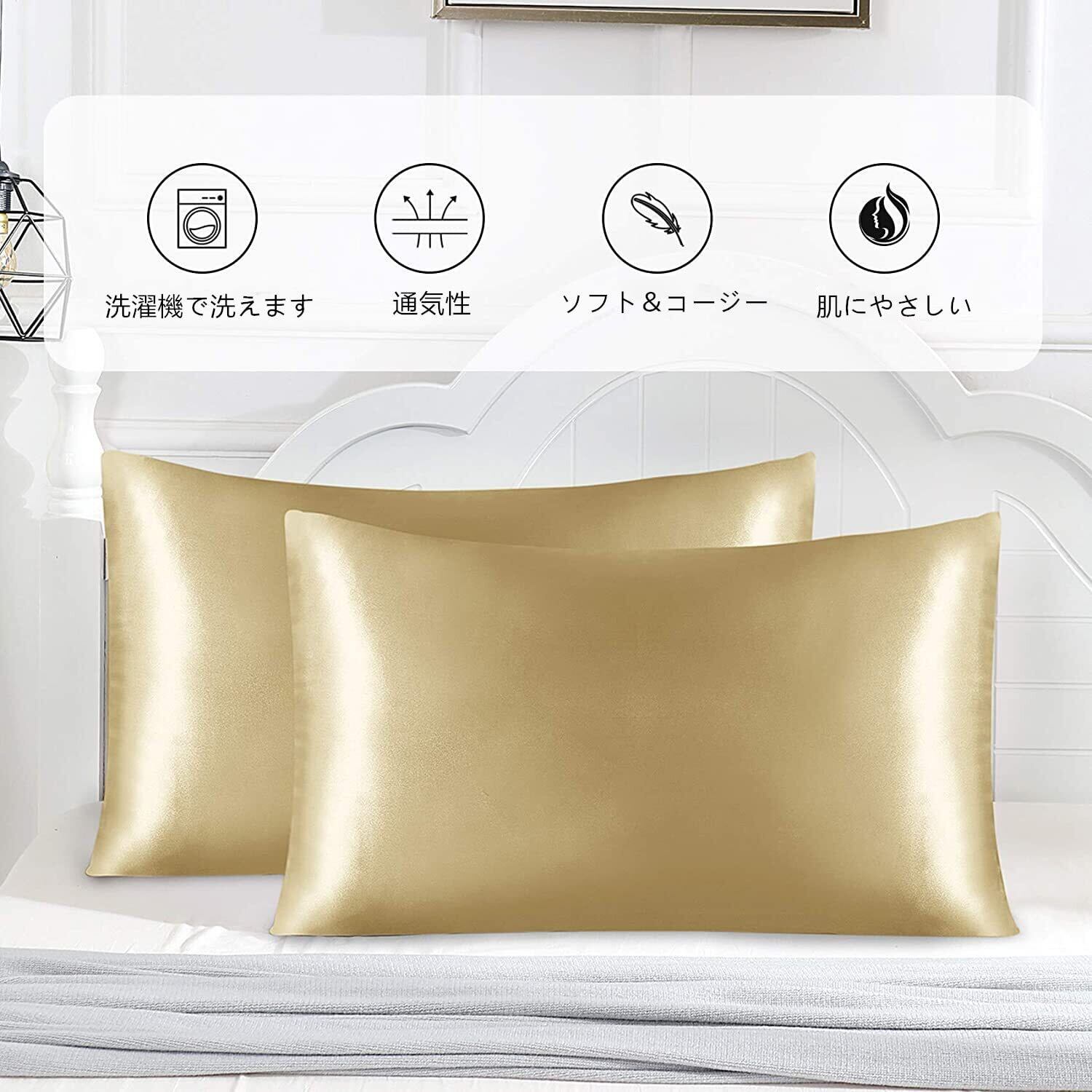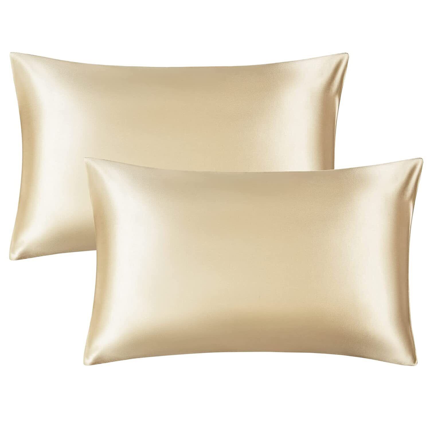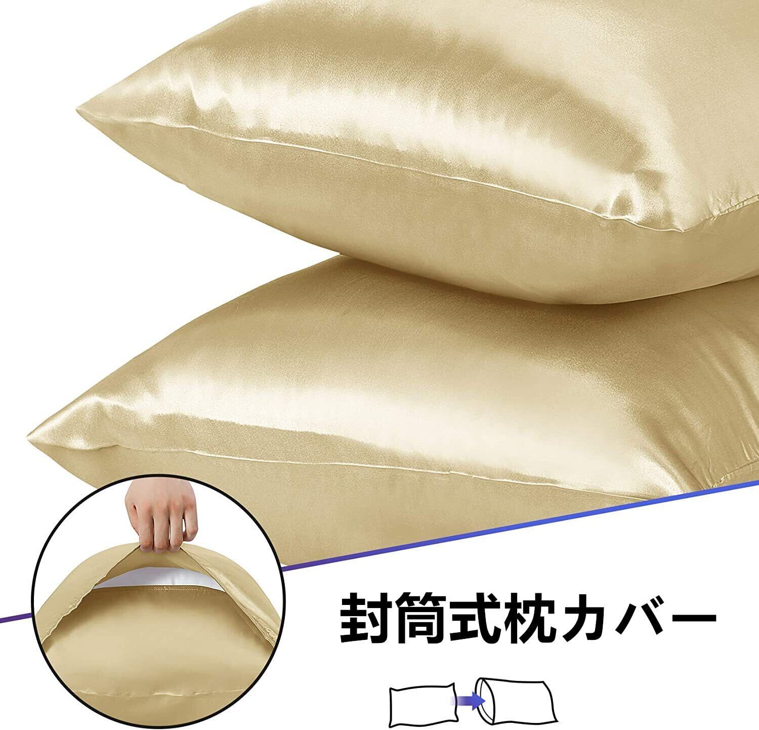 枕カバー 2枚セット サテンの枕カバー (ポリエステル素材)封筒式ピローケース 美肌 美髪 両面シルクタイプ 滑らかな材質 静電気防止 (43*63, シャンパン)