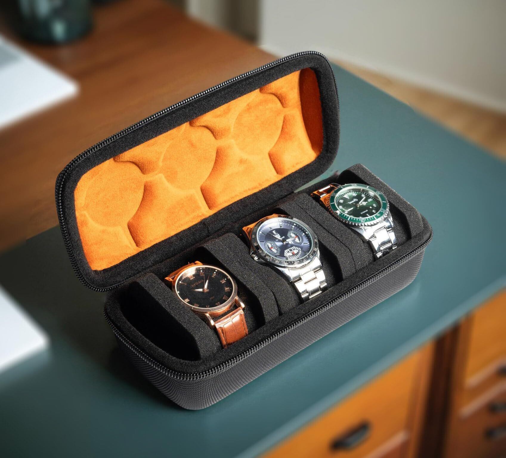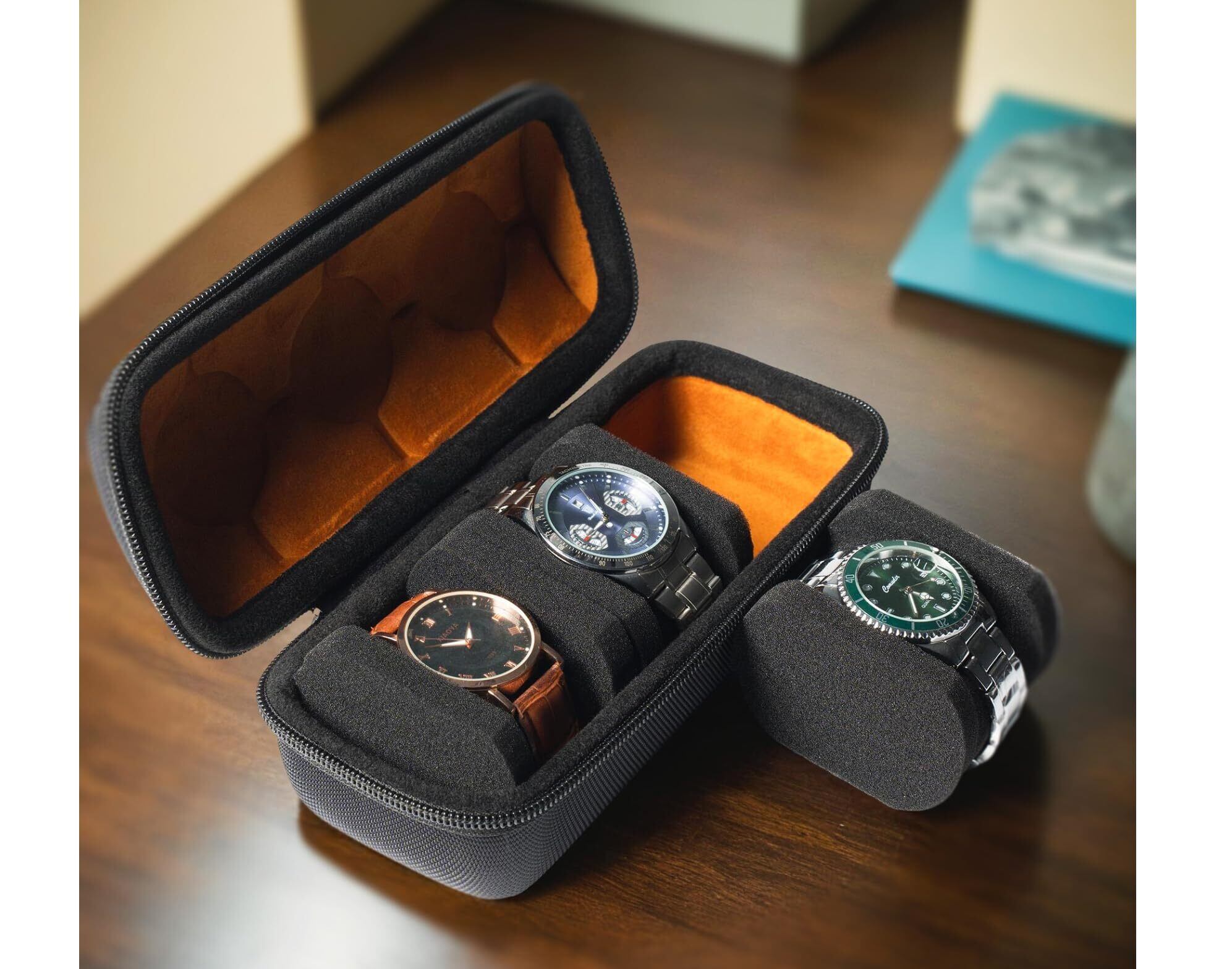 3本収納腕時計ケース、腕時計収納バッグ、旅行用腕時計収納ケース、ハードカバー保護、カスタムスポンジ枕 ウォッチの揺れ止め、小型および大型の時計、ダイバーズウォッチ、スポーツウォッチに適合