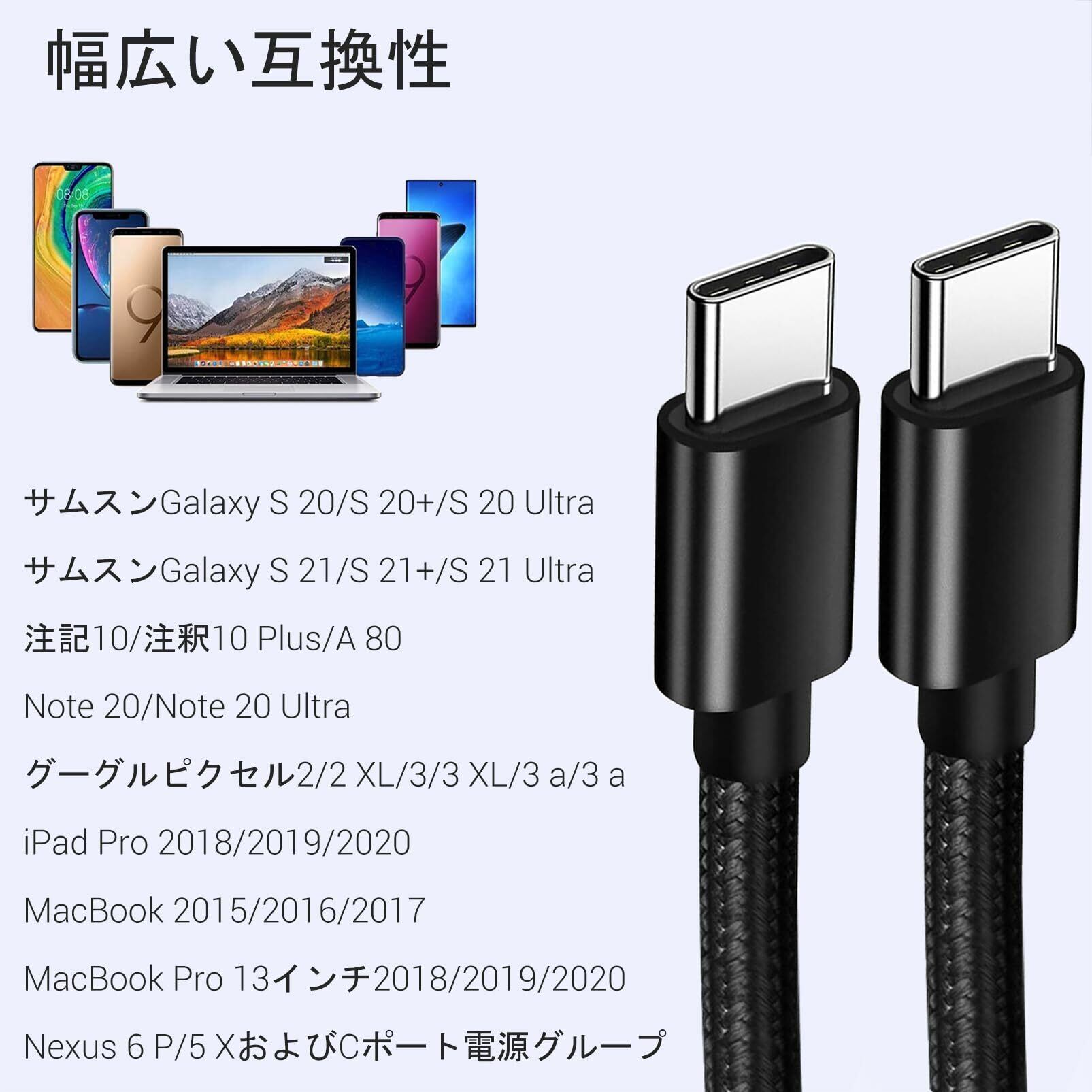 【互換性】: usb c-cケーブルは、互換サムスンGalaxy S 21 S 21+/S 20 S 20+S 20 Ultra Note 10/Note 10 Plus、グーグルPixel XL/2/2 XL/3 XL/3 XL、iPad Air 2020 10.9、iPad Pro 12.9''Gen 3(2018)、iPad Pro 11'''、Nexus 6 P/5 X、およびオリジナル充電器と互換性がある