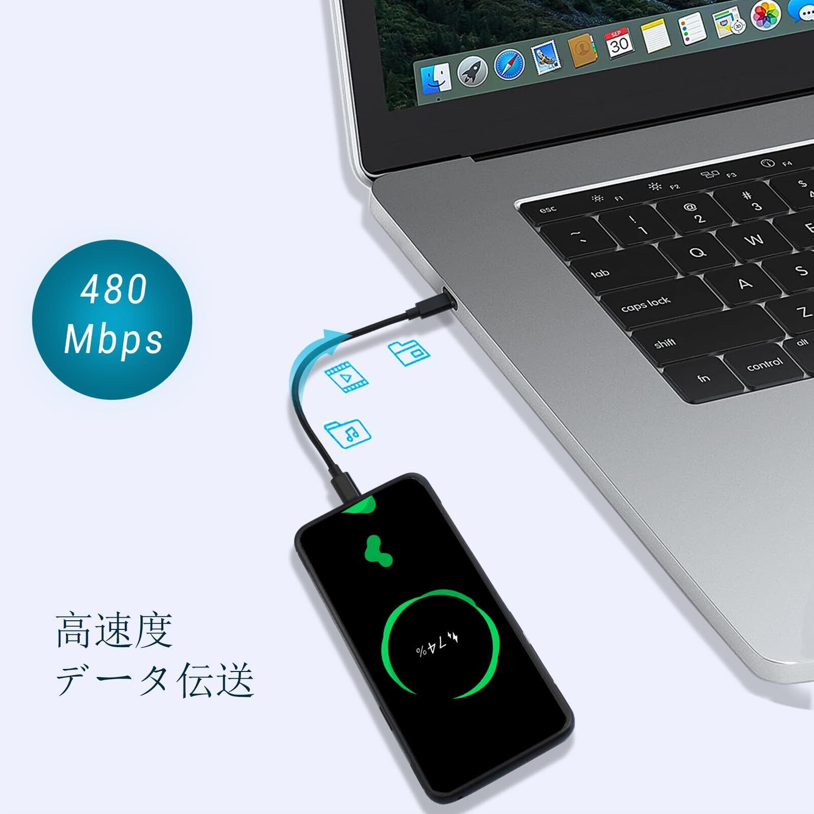 【急速な充電とデータ転送】: ショートケーブルは20 V 3 A PD 60 W(最大)電力をサポートし、充電速度が速い。また、480 Mbpsのデータ転送も提供しています