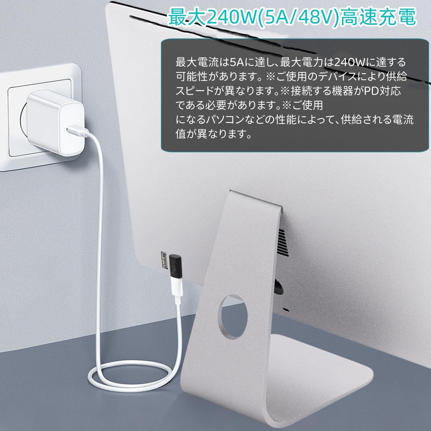 3.【40Gbps高速伝送&240W高速充電】最新のType-C 3.2 技術により USB4.0 最大40GbpsのThunderbolt 4高速データ伝送(実際の転送速度は2.8GB/s実現と2.1GB/s書き込み)。このは、8K@60Hzまたは4Kディスプレイ2台を駆動するのに十分な帯域幅を有します。ファイル、ドキュメント、オーディオ、ビデオなどを数秒で高速に転送します。最大電流は5Aに達し、最大電力は240Wに達する可能性があります。注:1、40Gbpsは理論上の最大伝送速度です。実際の速度は、PC端末やケーブルなどの影響を受けので、実際の伝送速度を参照してください。