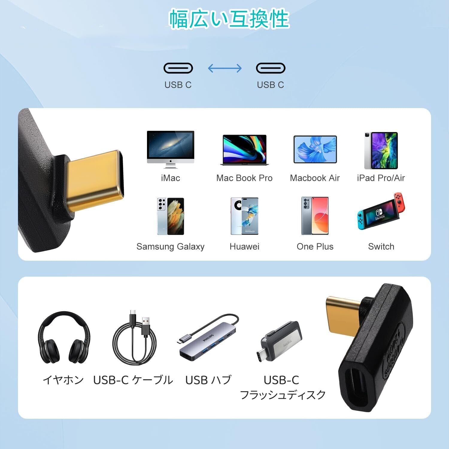 1.【USB-C L字 変換アダプタ】USBコネクタ-- タイプC オスからメスに変換するL字アダプタです。