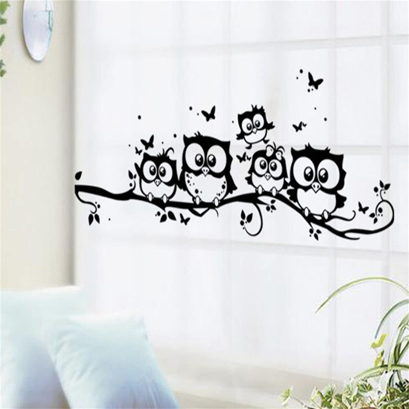 WOHAHA ウォールステッカー おしゃれ 木 黒 フクロ ウモノトーン 葉っぱ 蝶 壁ウォールステッカー 動物 ウォールすてっかー 植物 ウォールデコ 壁紙シール はがせる おしゃれ 北欧 粘着剤付き 剥がせる