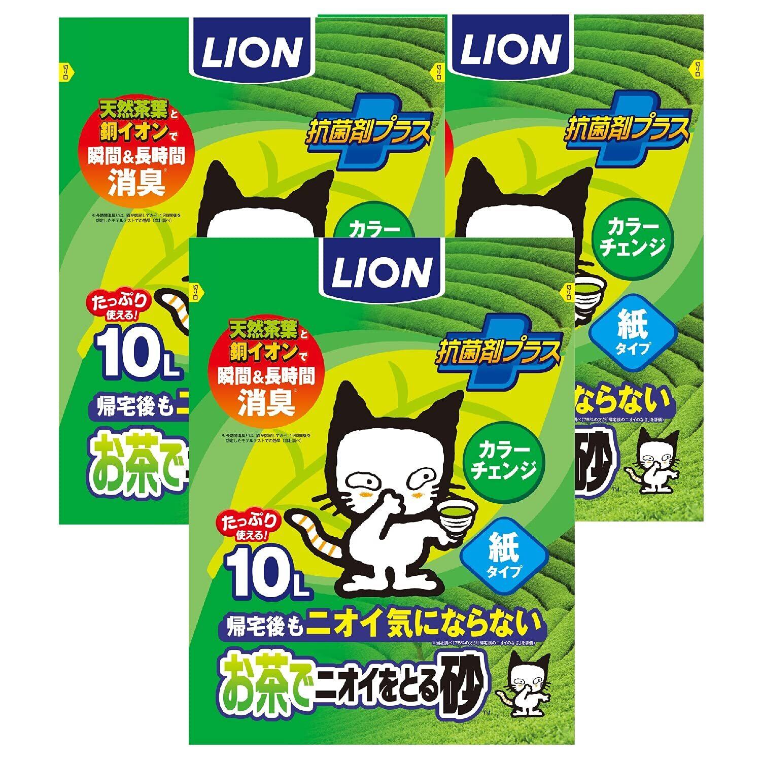 ライオン 猫砂 お茶でニオイをとる砂 10L×3袋 紙タイプ LIONPET