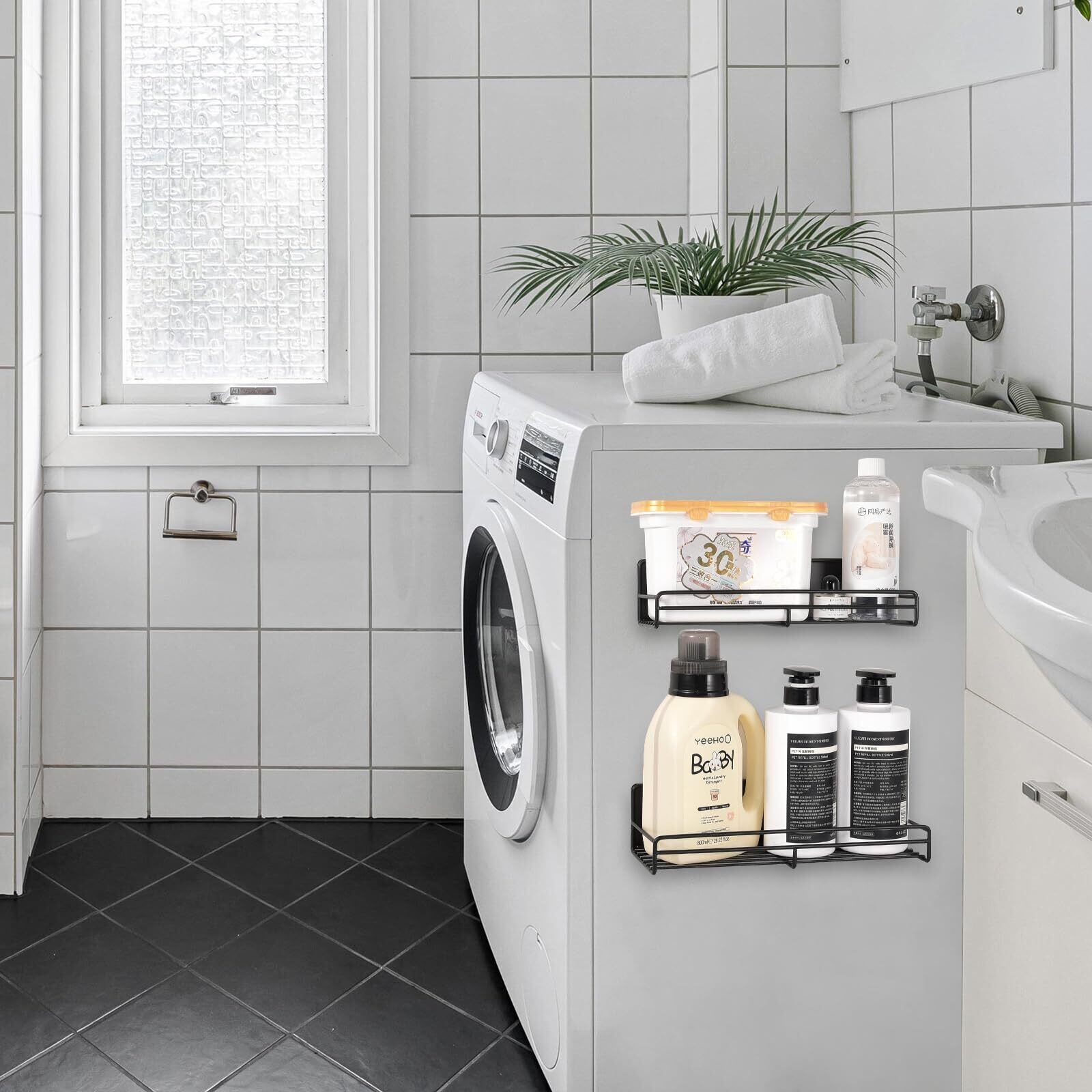 浴室用ラック マグネット お風呂 ラック 2個セット 浴室 洗面所 キッチン 収納棚(2個入り ホワイト)
