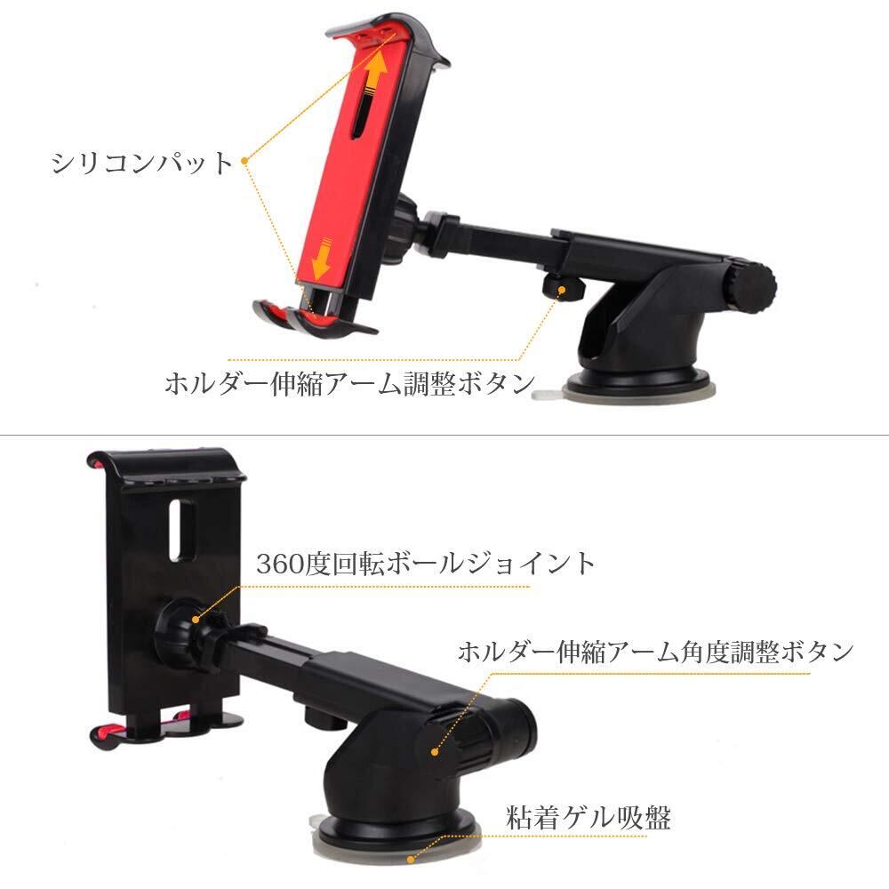 Catland 車載スマホホルダー タブレットホルダー オートホールド ダッシュボードに取り付け ゲル 吸盤式 強力粘着 360度回転 伸縮アーム シリコン スマホ スマートフォン 車載タブレットホルダー ステント カーマウント 5-11インチ 多機種対応