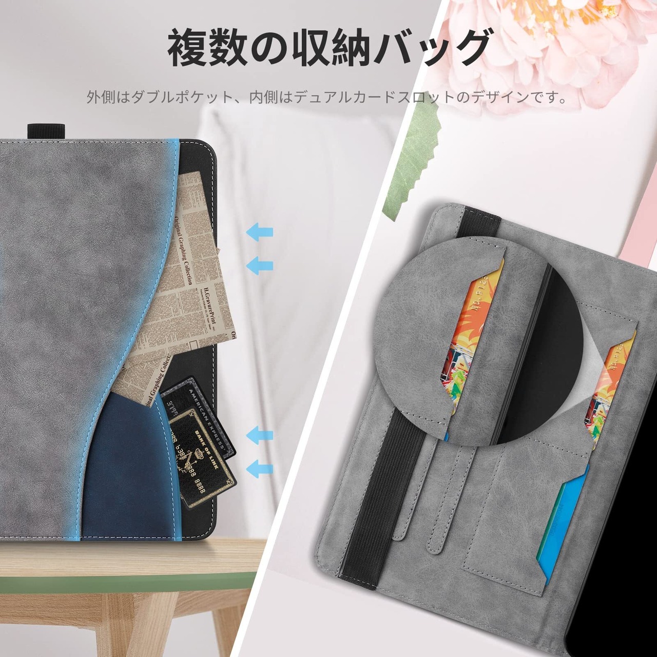 Succtopy 対応iPad 10.2 ケース iPad 第9 / 8 / 7世代 ケース 2021 2020 2019 手帳型 薄型 10.2インチ Apple Pencil 収納可能 PU合成レザー スタンド機能 マルチポケット カード収納 全面保護 (モデル番号A2602、A2603、A2604、A2605)ライトグレー