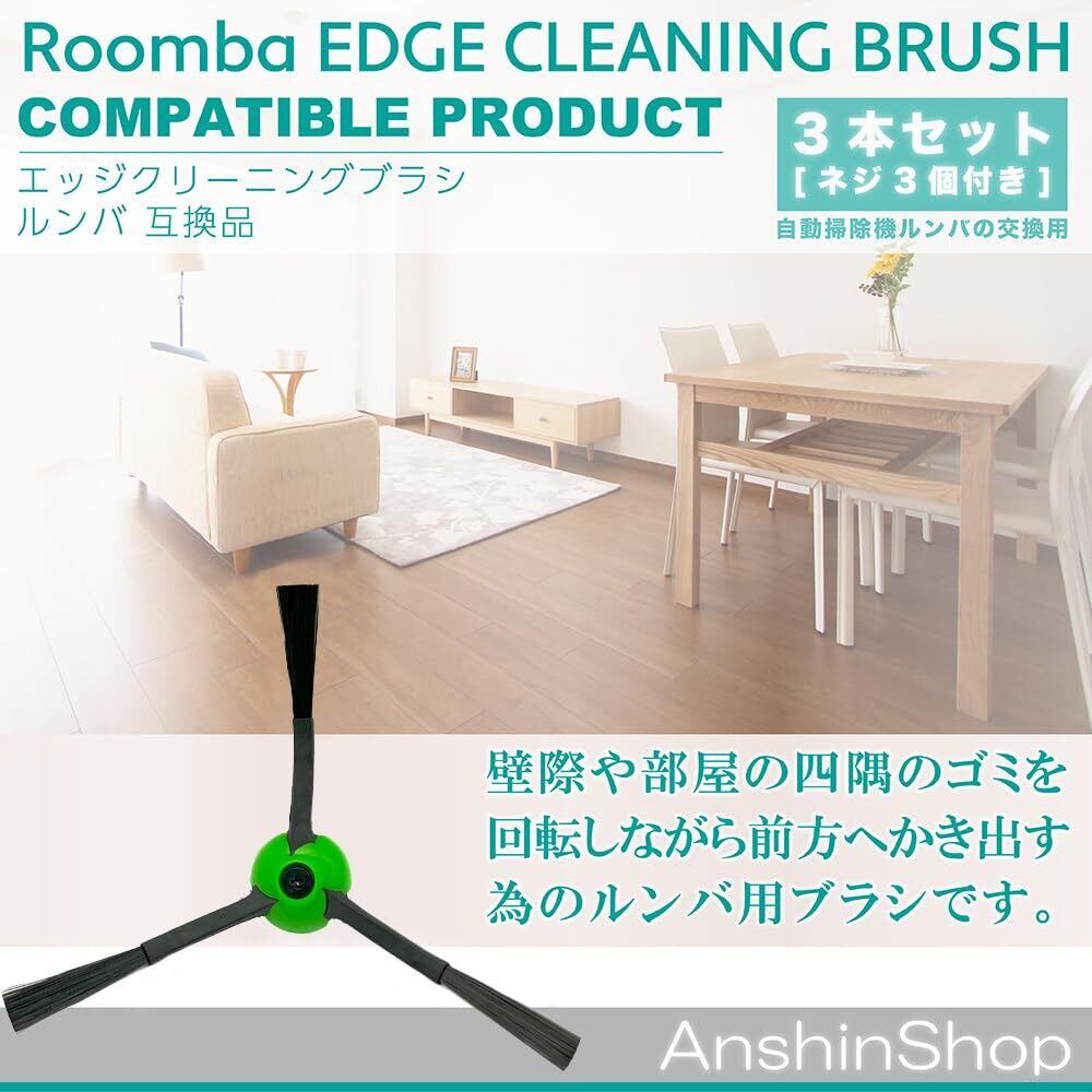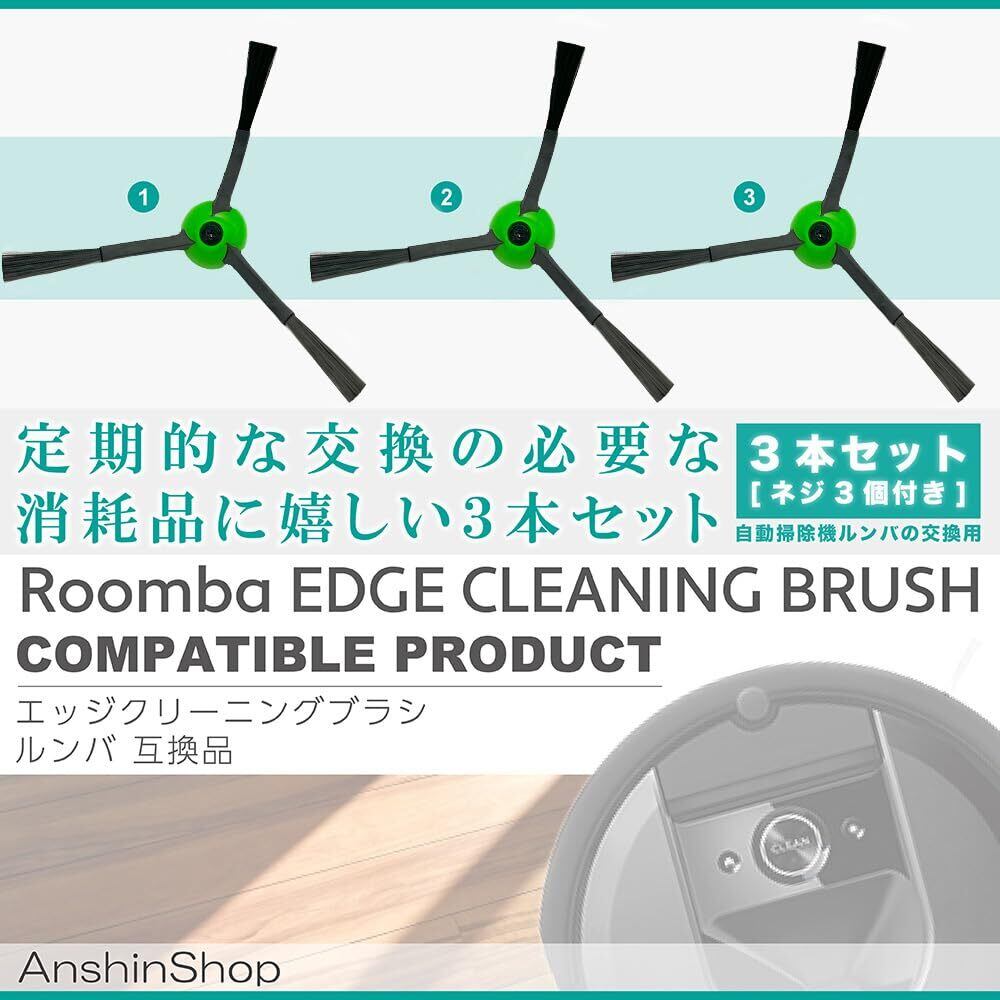 AnshinShop ルンバ用 エッジクリーニングブラシ j9+ / j7+ / i7+ / i5+ / i3+ / j9 / j7 / i7 / i5 / i3 / i2 / e5 エッジブラシ 黒 4747487に対応 3個 互換品