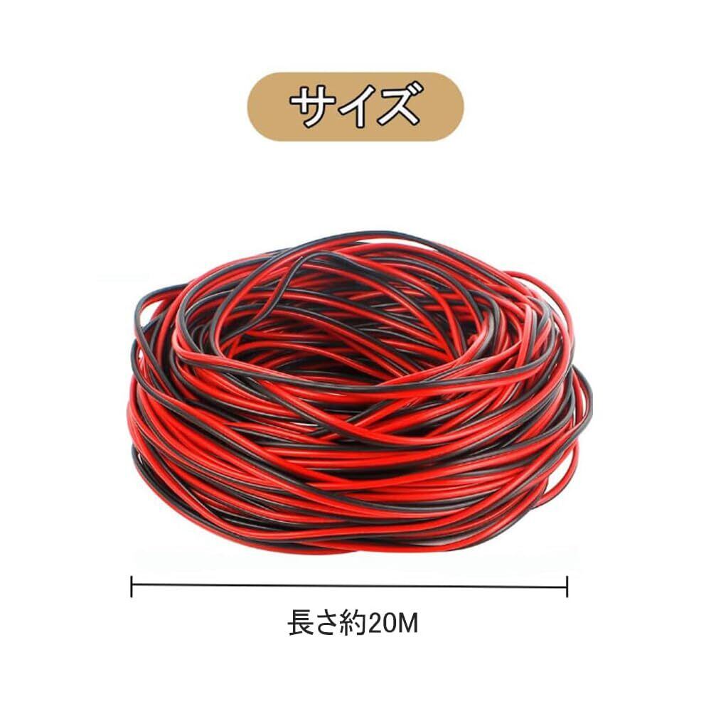 ワイヤーゲージ:22AWG メインカラー:レッド、ブラック ワイヤ長さ:20M 届かない部分の配線の延長や、サイズを調節し様々な家電機器に使用することが可能です。