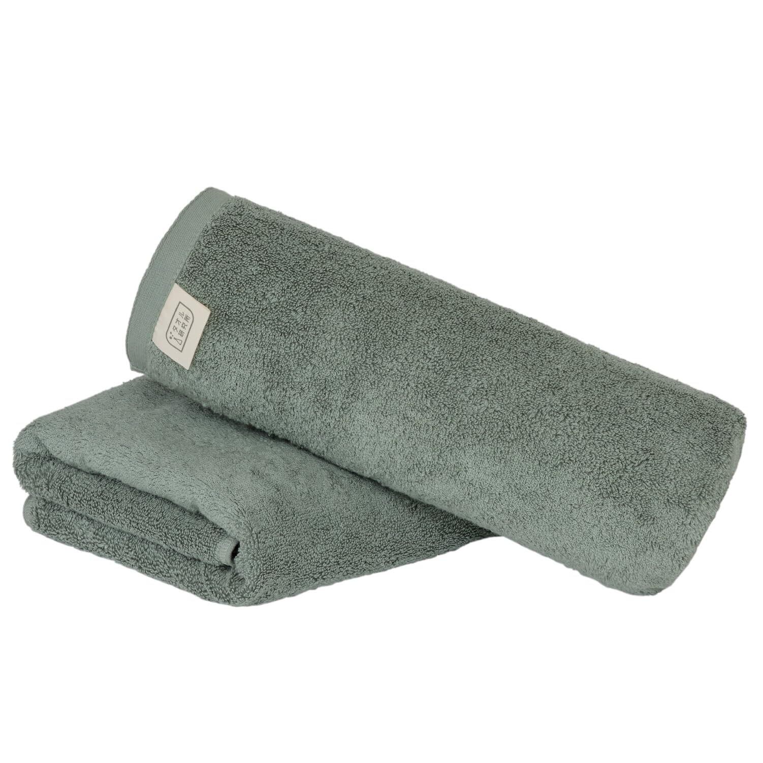 タオル研究所 [ボリュームリッチ] #003 バスタオル ダスティーグリーン 2枚セット ホテル仕様 厚手 ふかふか ボリューム 高速吸水 耐久性 綿100% 480GSM JapanTechnology