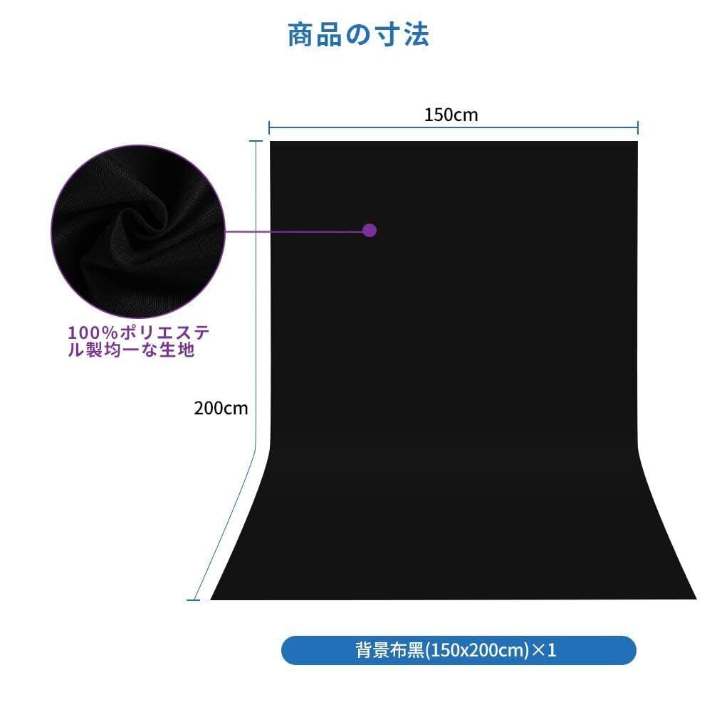 Hemmotop 背景布 黒 布 暗幕 ブラック 1.5m x 2.0m ポール対応 バックグラウンド ポリエステル バックスクリーン 150 x 200 cm 背景紙 写真撮影用 布バック 人物 商品 ビデオ スタジオ用