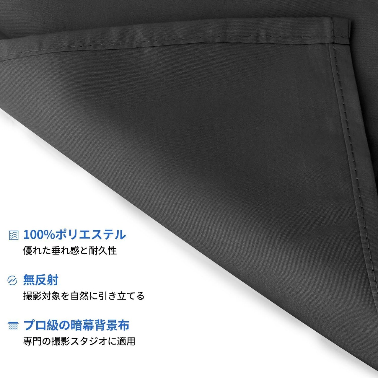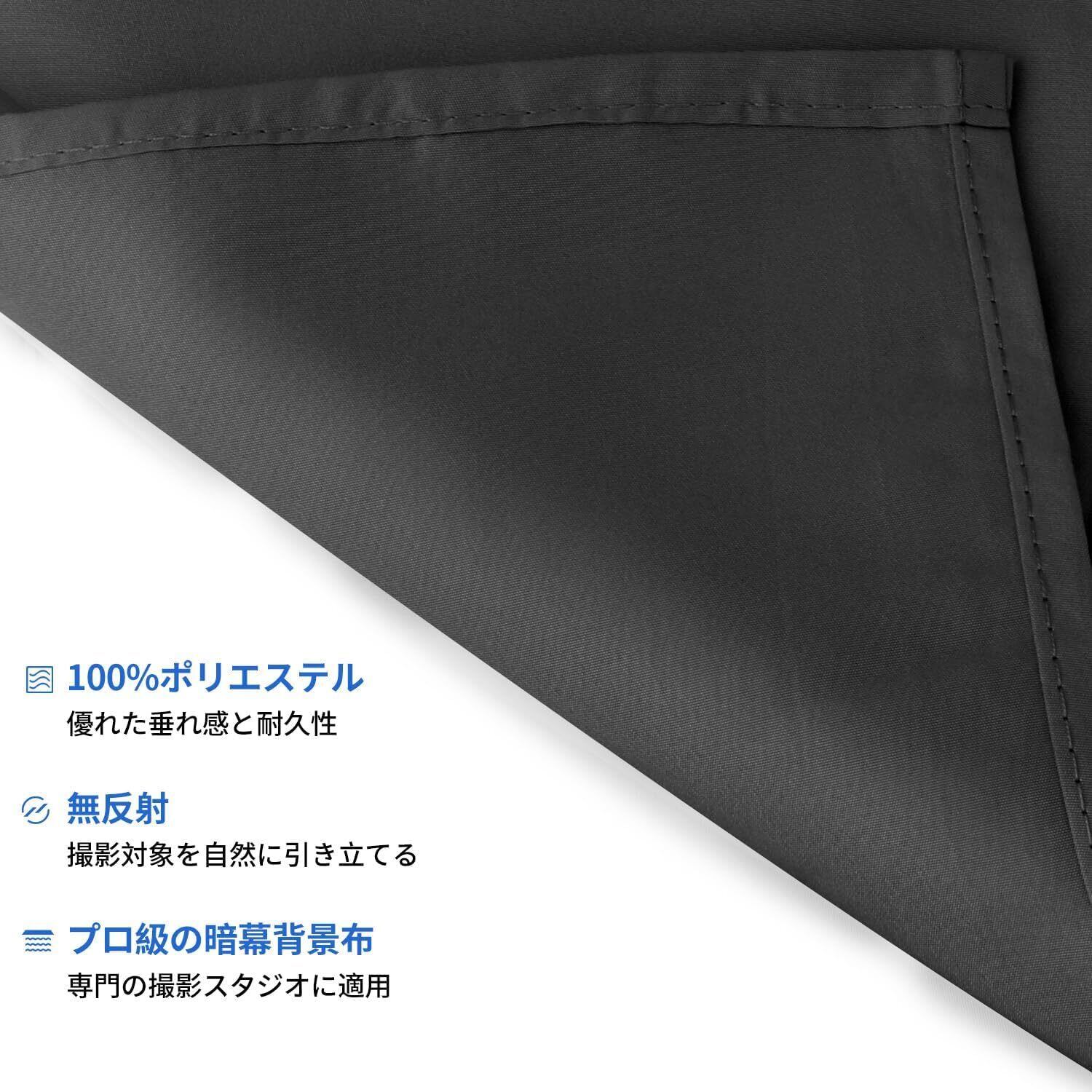 【こだわった縫製】黒背景布の端はよく処理されて、糸を抜ける心配なし、長く愛用可能です。黒背景布は100%のポリエステル材質を採用し、垂れ感がよくて、素晴らしいスタジオの効果を提供でき、専門な撮影スタジオに適用します。