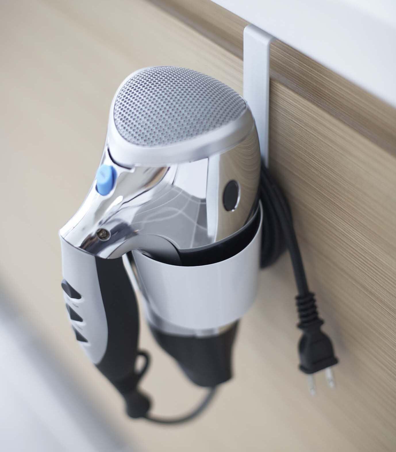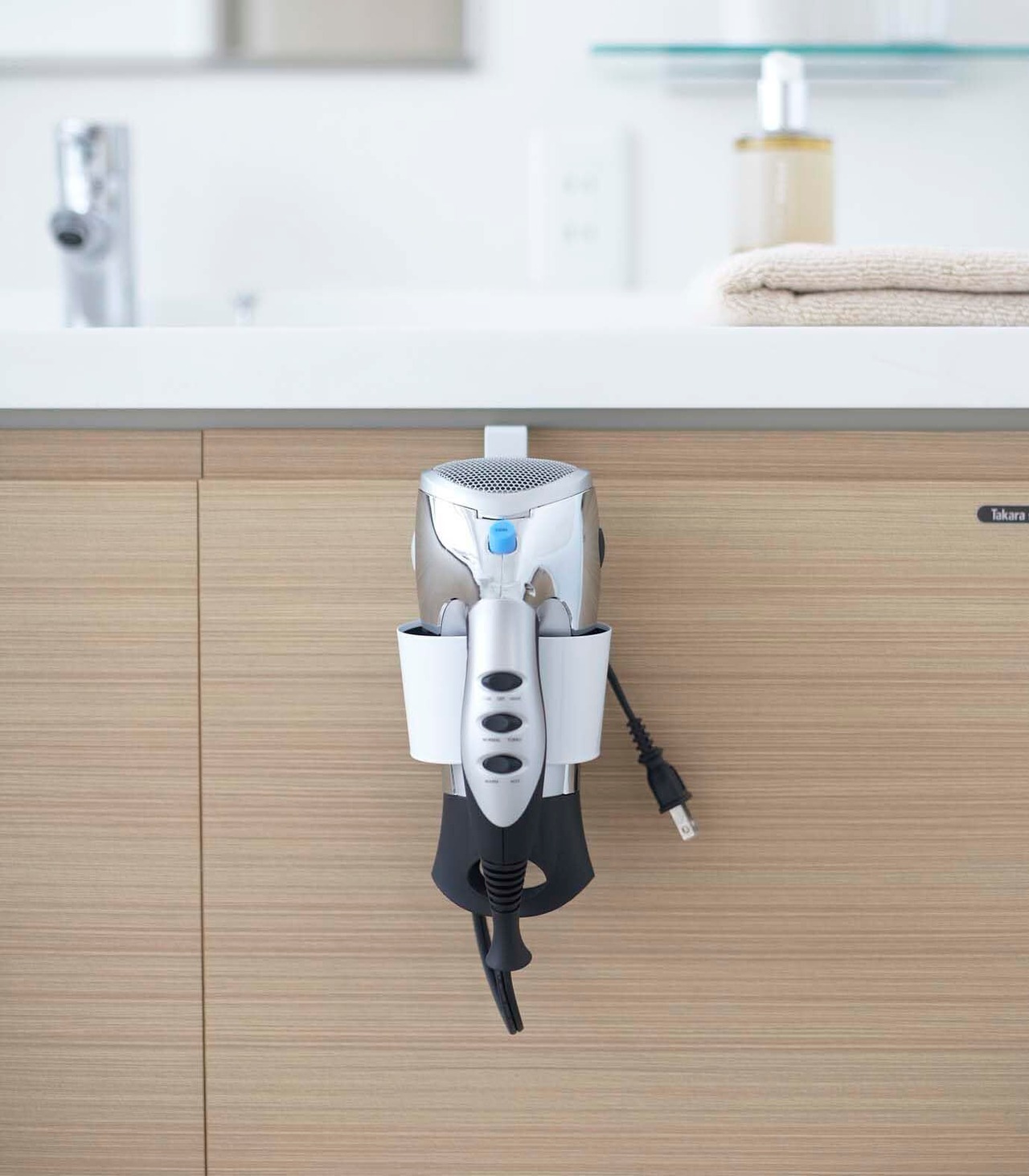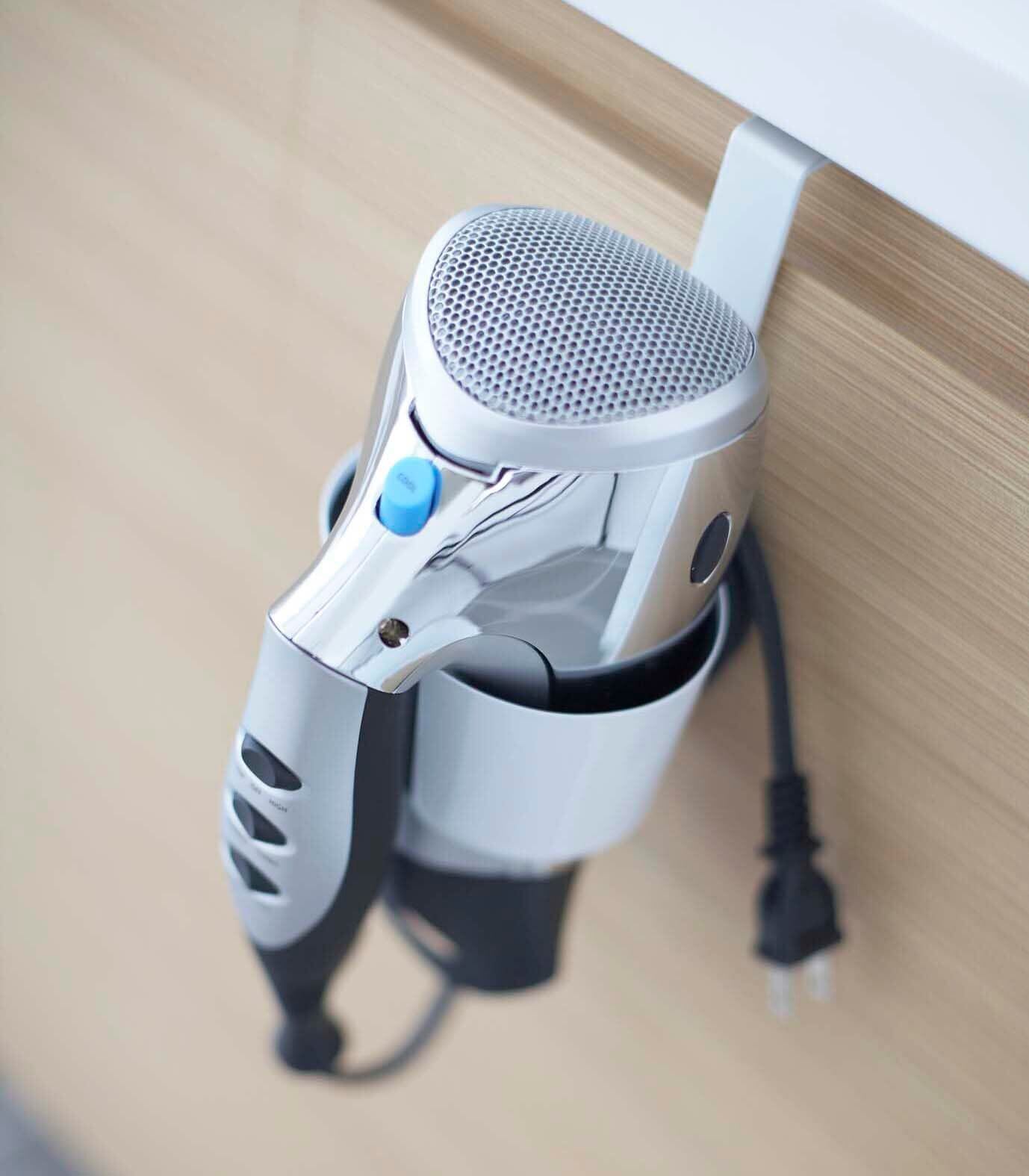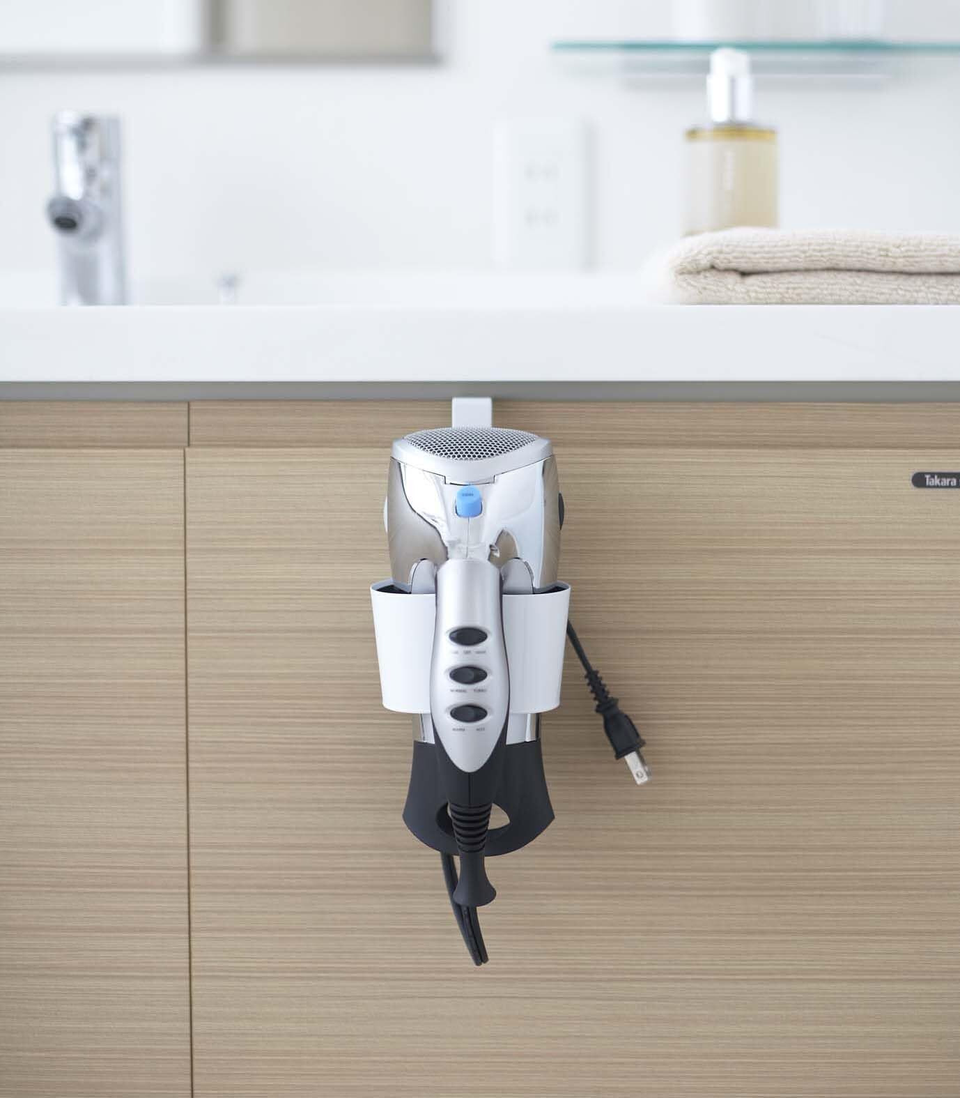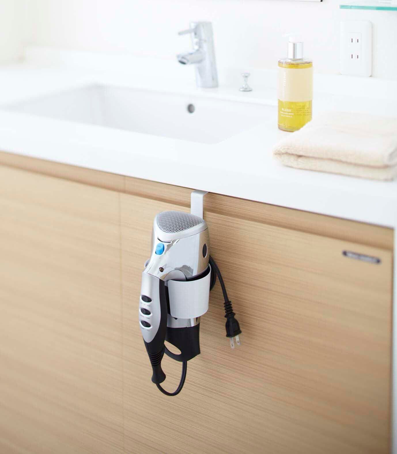 洗面台等の扉に引っ掛けてドライヤーを収納