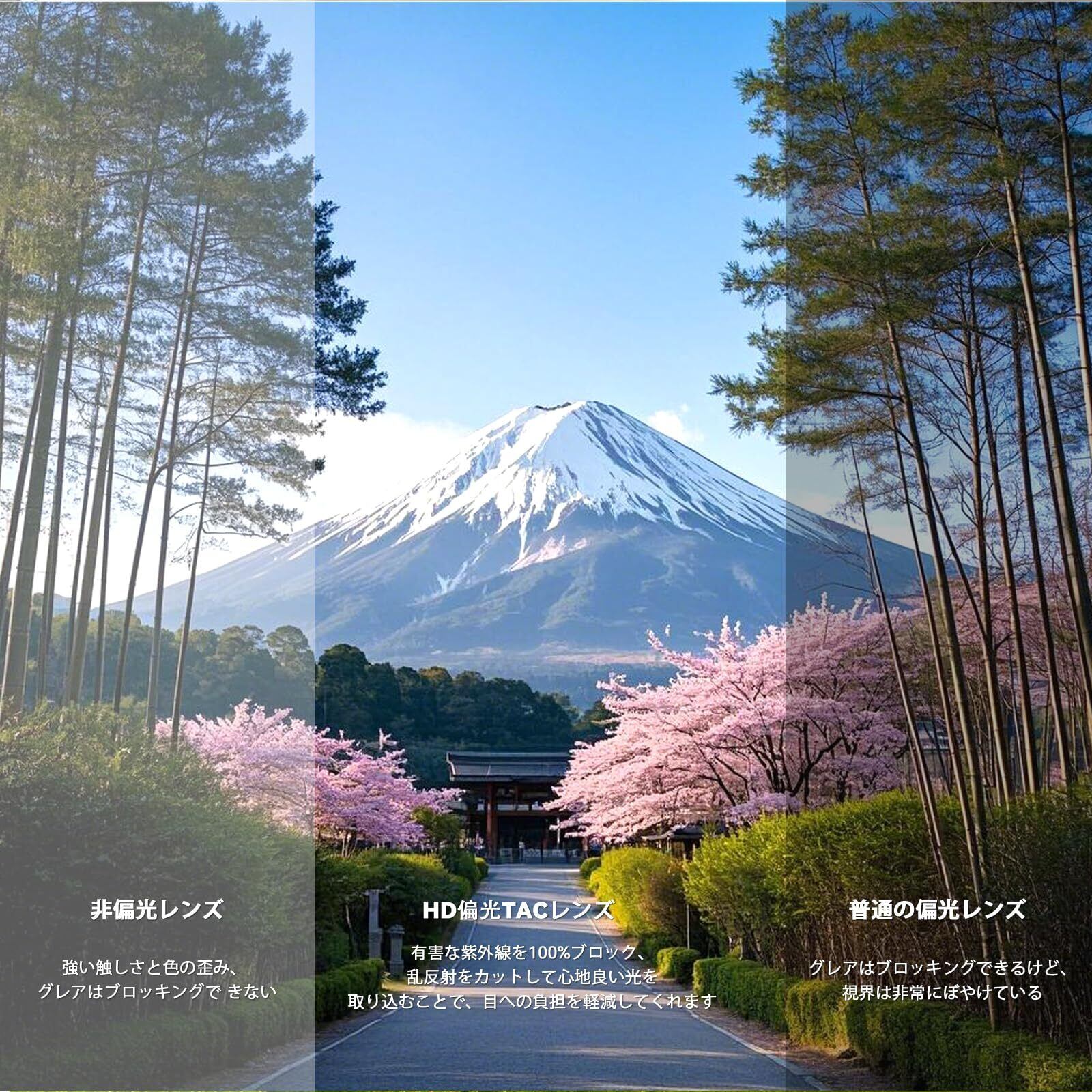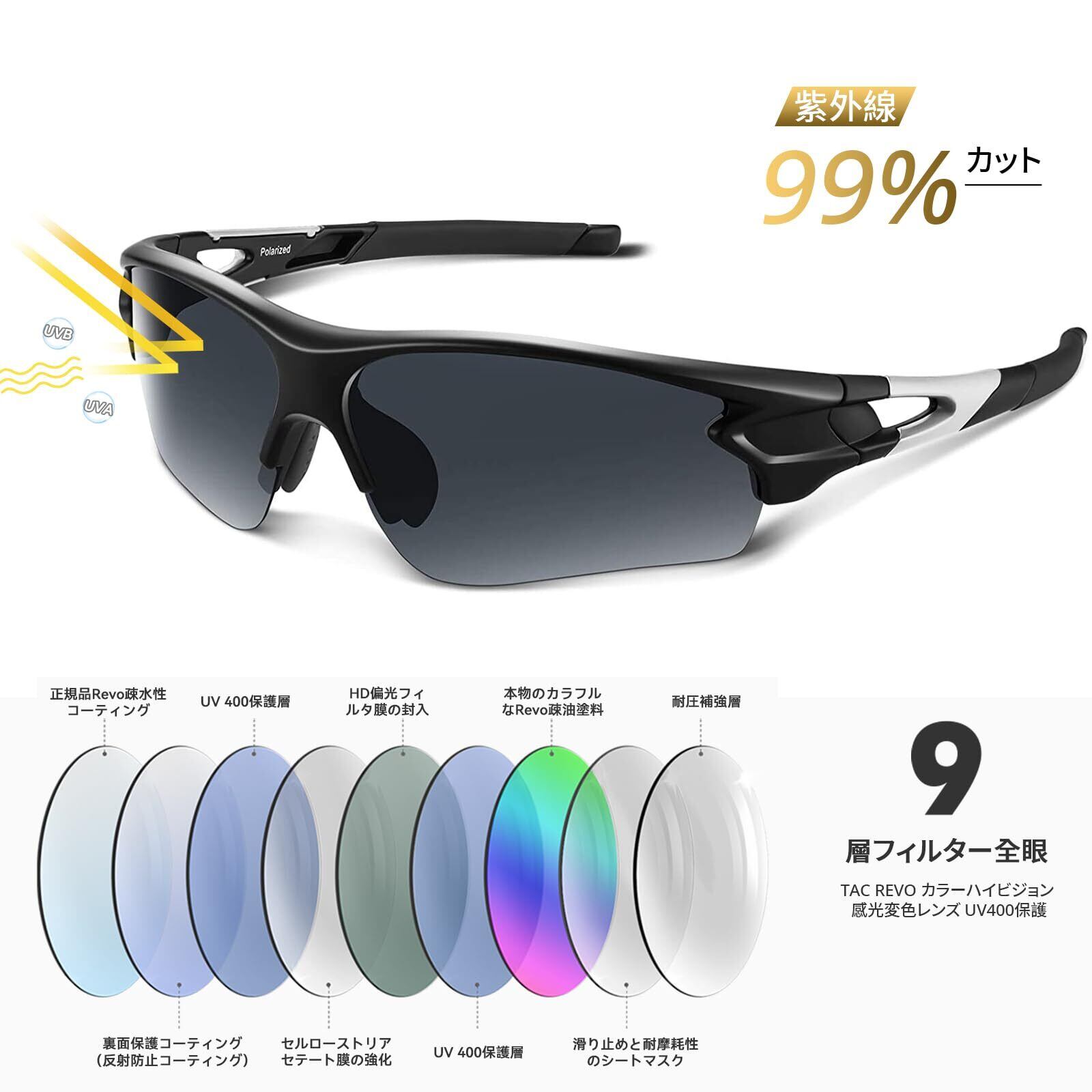 高品質のREVOカラーハイビジョン偏光レンズ:すべての偏光レンズは高品質破砕防止TAC材料で作られており、UV400レンズ保護コーティング、有害なUVAとUVB をブロックし、本物の色を復元し、REVO偏光レンズを使用して元の色を維持し、効果的に視覚の透明度とコントラストを改善し、より簡単に反射や散乱光を排除します。偏光サングラスは風景をよりクリアで柔らかくし、目の負担を減らします