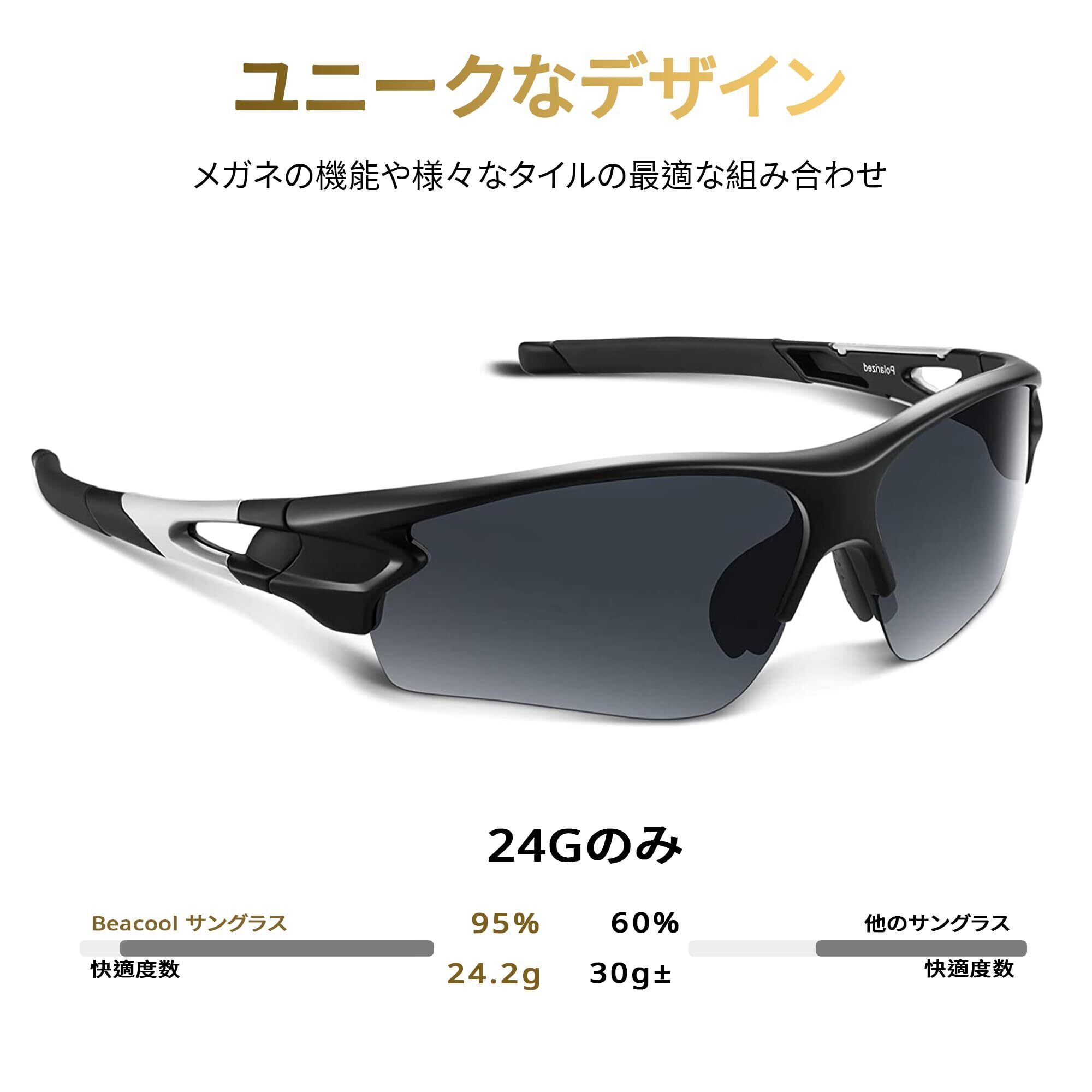 [BEACOOL] スポーツサングラス 偏光レンズ 野球 ランニング 自転車 登山 釣り ドライブ ゴルフ バイク テニス スキー メンズ レディース 超軽量 TR90 TAC UV400 紫外線防止 ユニセックス サングラス 安全 清晰 ブラック
