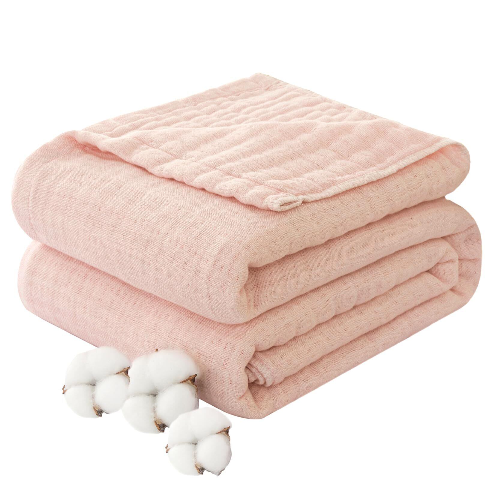 fuwawa ガーゼケット シングル 6重織り 天然綿100% 吸湿 通気 綿 お昼寝ケット 肌掛け やわらか 夏快眠 肌に優しい 年中快適 丸洗いOK 抗菌・防臭・防ダニ 洗える 軽量 リバーシブル 冷房対策 ガーゼけっと 140x190cm (無地,シエルピンク)
