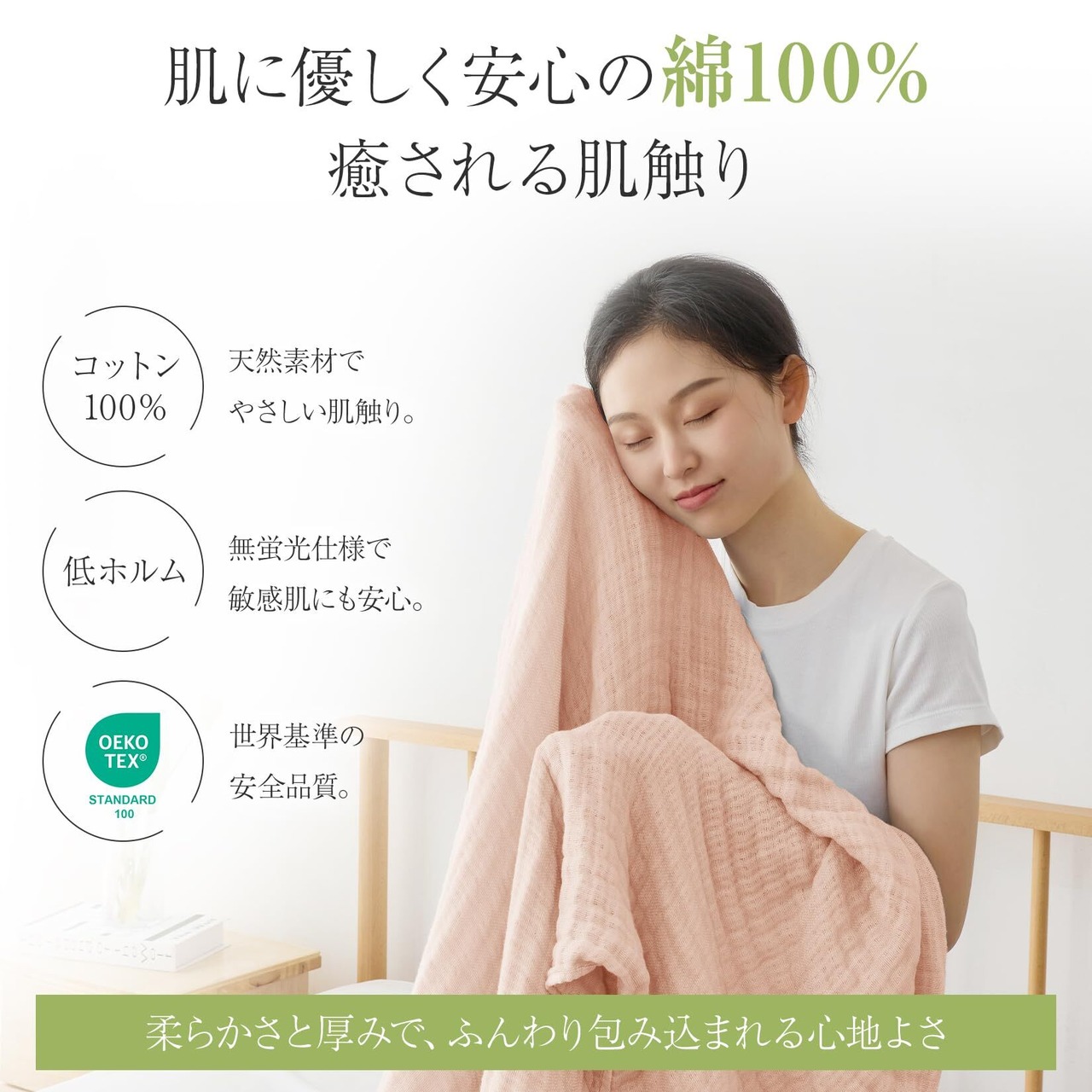 【天然綿100%素材·癒される肌触り】ガーゼを6枚重ねることで、贅沢な柔らかさと厚みを実感していただけます。また、パイルがないので、静電気も大変起きづらいのも人気です。