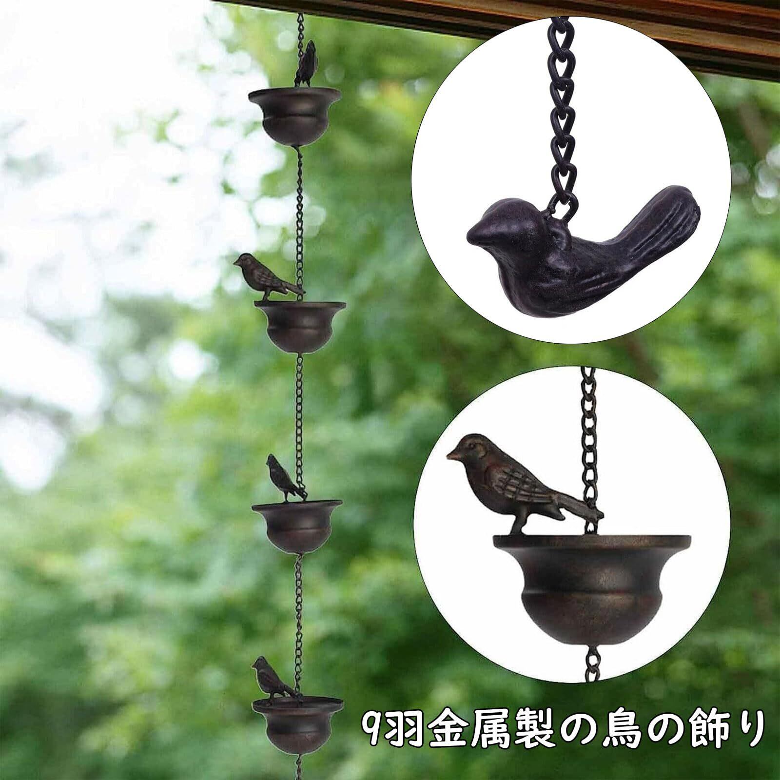 【美しいカップ上の鳥】このレインチェーンは、カップの下に溶接している鳥かわいい!ダークブロンズ仕上げの9羽の金属製の鳥が特徴で、庭やパティオに魅力的な雰囲気を加えます。創造的な鳥が登場し、活気のあるシーンを作り出します。