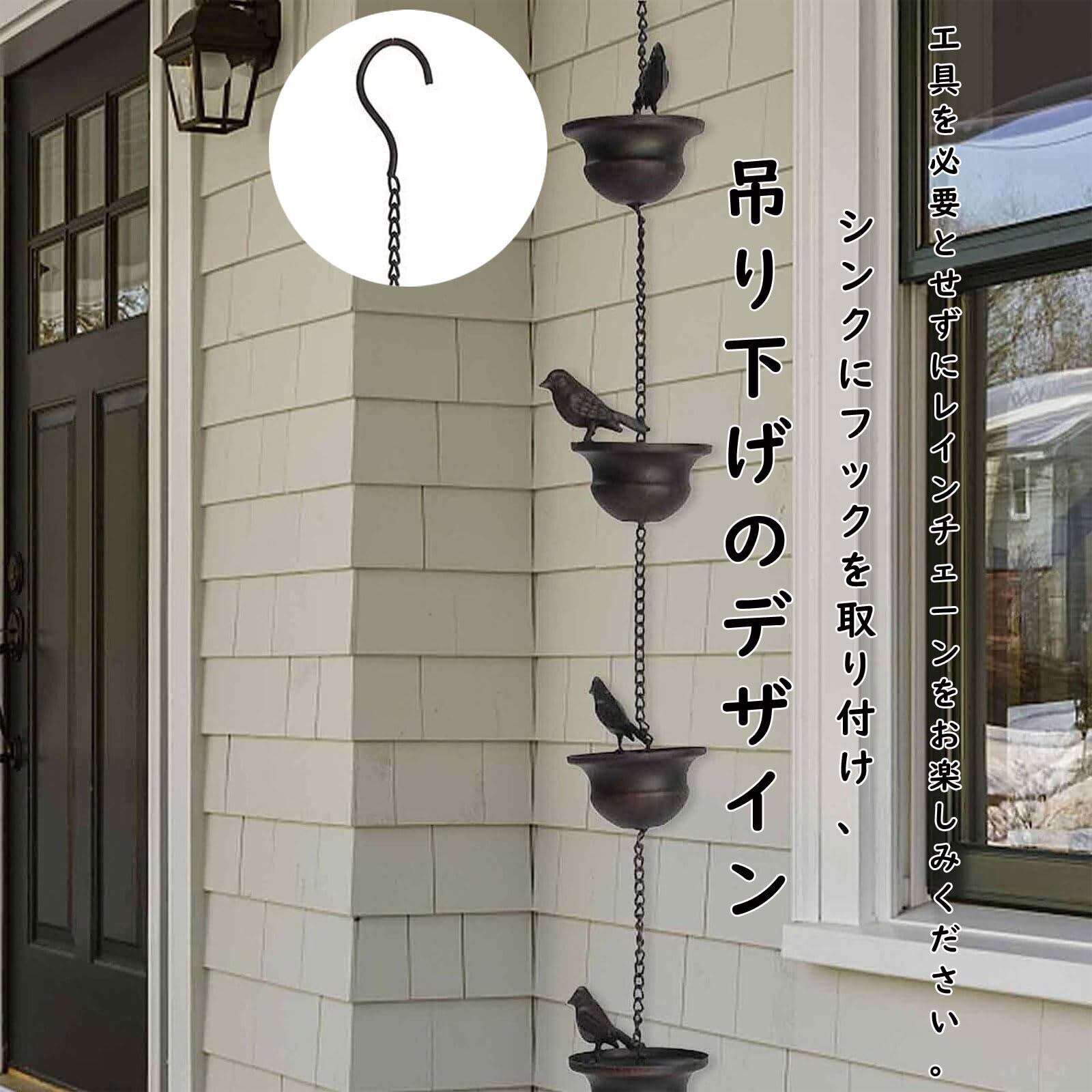 【幅広い用途】このレイン チェーンはあらゆる機会に最適です。新築祝いを素敵なギフトや特別な機会のお祝いに最適です。室内、廊下に吊り下げて、カーポートに取り付けて簡単快適。シンクにフックを取り付けて、道具を必要とせずにレインチェーンをお楽しみください。移動も簡単で、ガーデンやお寺用品の便利な装飾です。