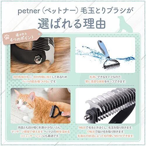 Petner(ペットナー) 抜け毛ごっそり ペットブラシ 毛玉取り 毛玉ほぐし 抜け毛取り「プロトリマー監修」長毛 短毛 犬・猫 水洗い可能