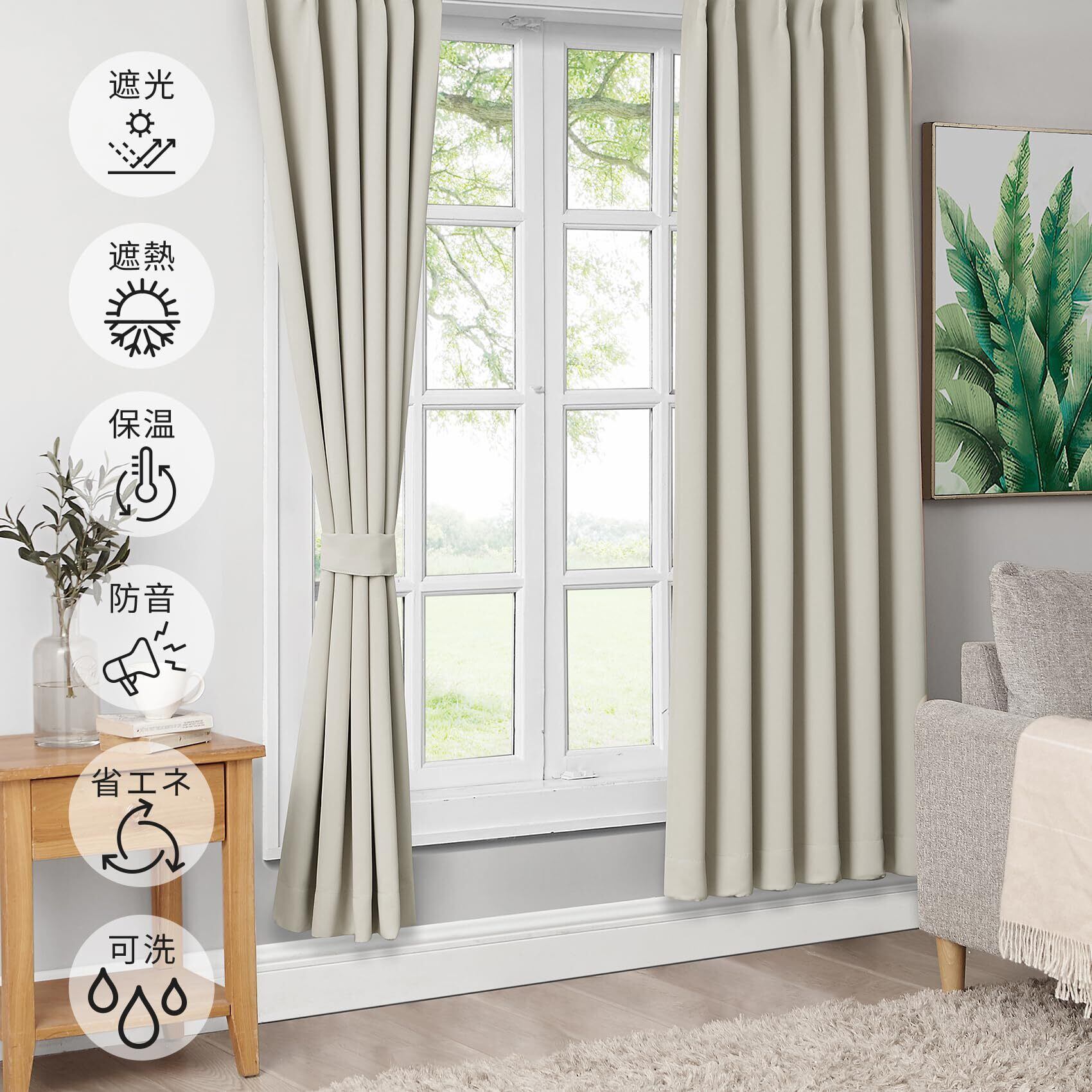 ◆【四季通用】遮光カーテンは生地が高密度のため、熱や冷気を通しにくいことも大きなメリットです。夏はお部屋の室温上昇を、冬は室温低下を防ぎ、冷暖房効率がアップします。特に西日がきついお部屋に遮光カーテンを取り入れれば、月々の電気代節約も期待できます。