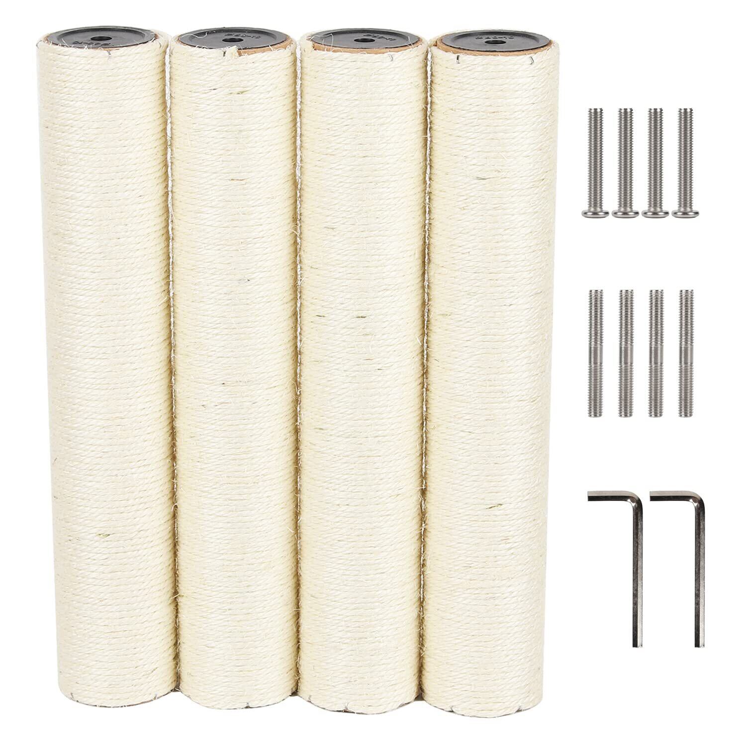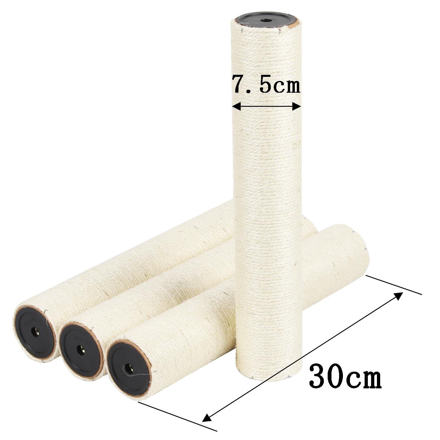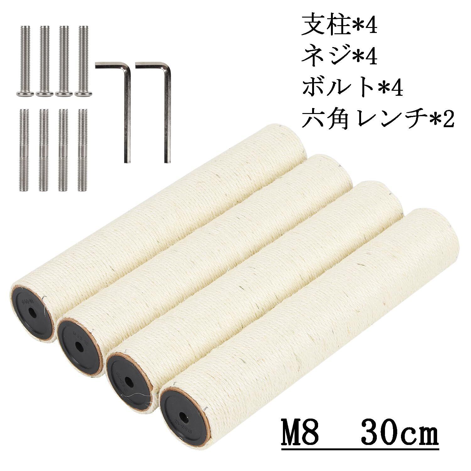 ECCIBOUN 4本セット直径7.4cm 猫 爪研ぎ キャットタワー ポール 替え 交換 麻柱 交換用 支柱 (30cm*4本, M8)