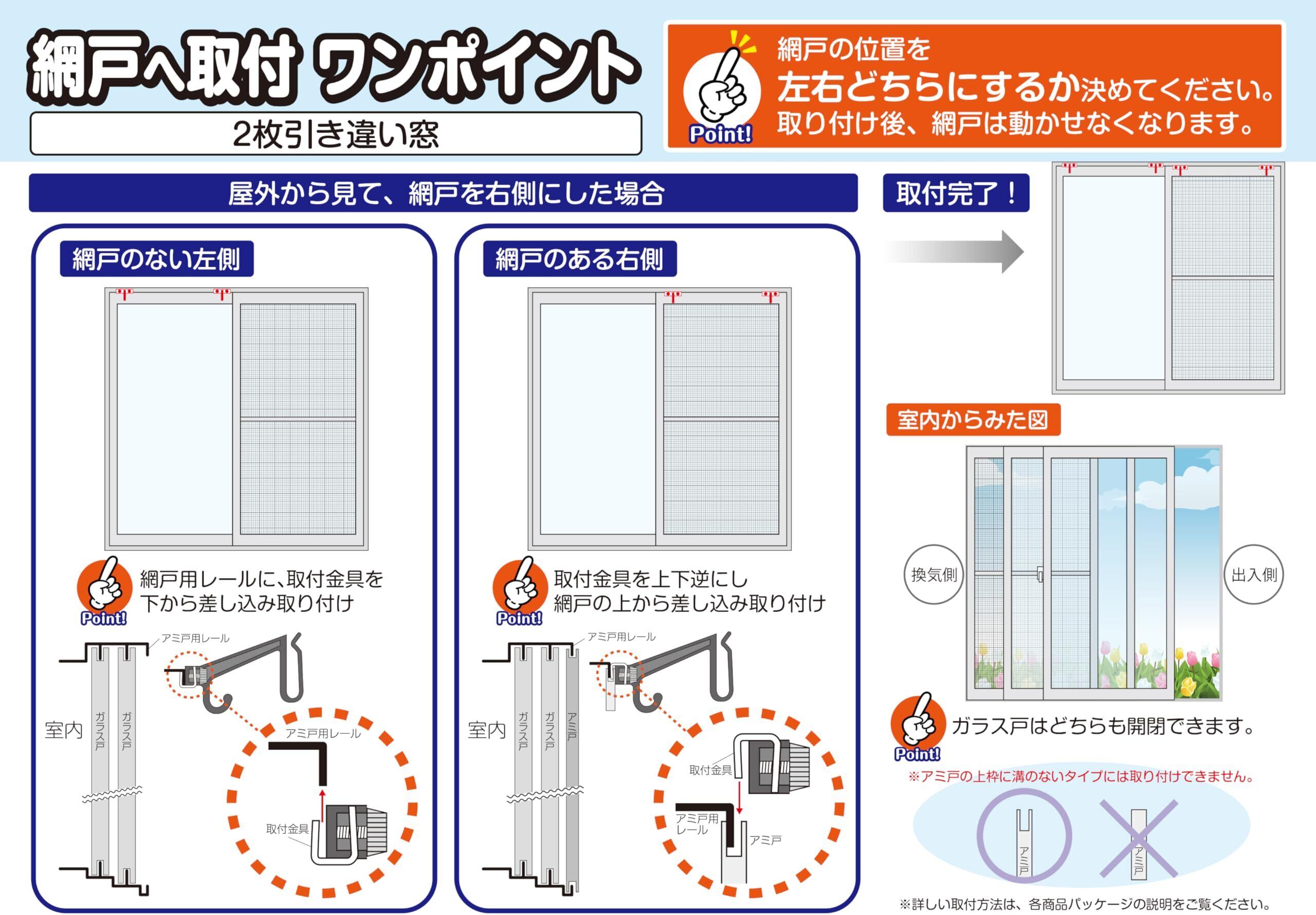 サッシ枠・網戸枠の両方に取り付け可能です。