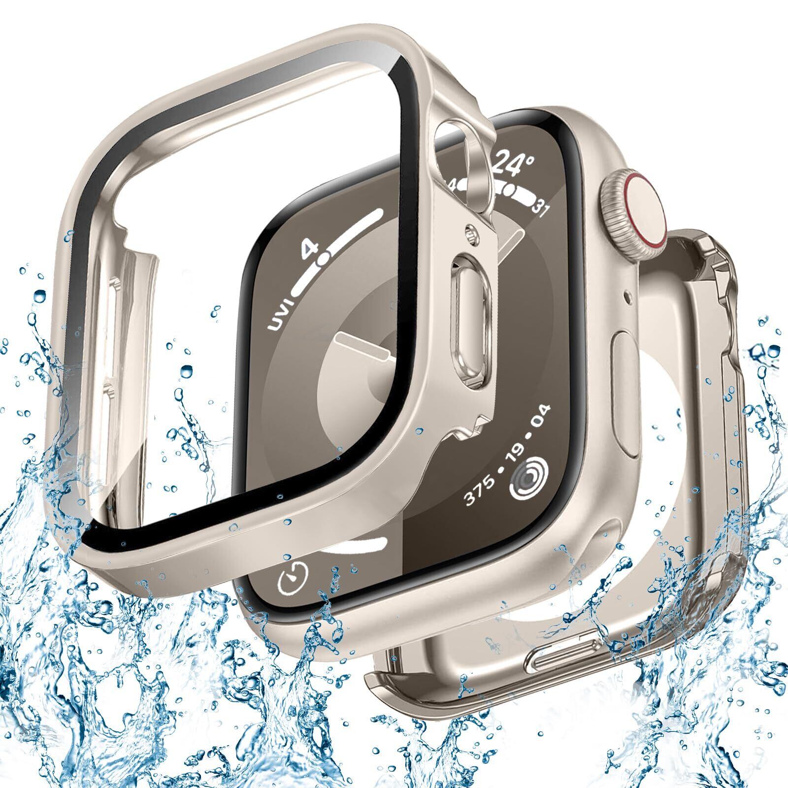 【防水・防塵ケース】シーリングリング内蔵したアッApple Watch ケース、アップルウォッチの画面にぴったりとフィットし、アップルウォッチ前面カバーと背面カバーの2 in 1全周保護設計で,表面から裏面まで 360度の全面保護します、IP67防水、防塵設計。ケースを取り外して水を拭くすることを繰り返す必要はありません。疎水性撥油性抜群の強化ガラス表面により、カバー面に水が溜まらず、シャワー、手洗い、発汗、運動、雨など、日常の使用に適しています。 ※ご注意:ウォッチの画面とカバーの間に水が浸入する場合、保護カバーを取り外し、柔らかい布で水を乾かしてください。