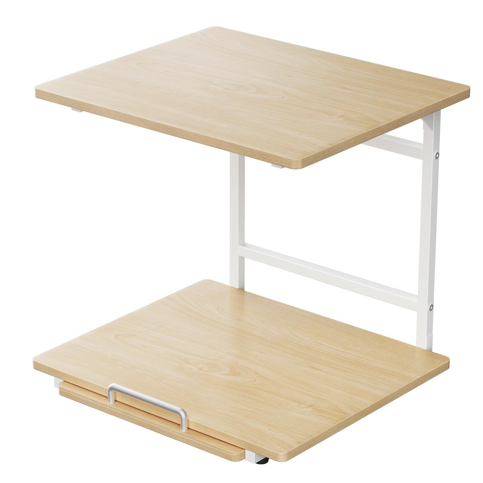 TKUIN 冷蔵庫上ラック レンジラック 幅47.5×奥行43.5~69.5×高さ45cm 2段 スライドトレー付き オーブントースター冷蔵庫上収納 整理棚 上棚耐荷重10Kg 安定・丈夫 レンジ台 引き出し 電子レンジ上収納 スリム 省スペース 北欧 新生活 一人暮らし おしゃれ (Natural)