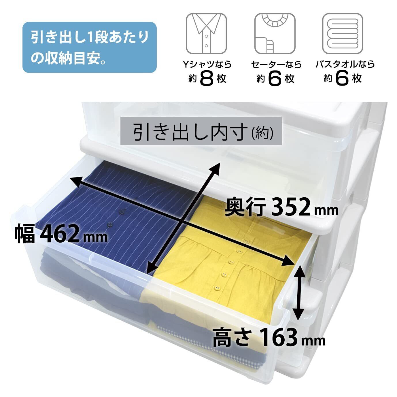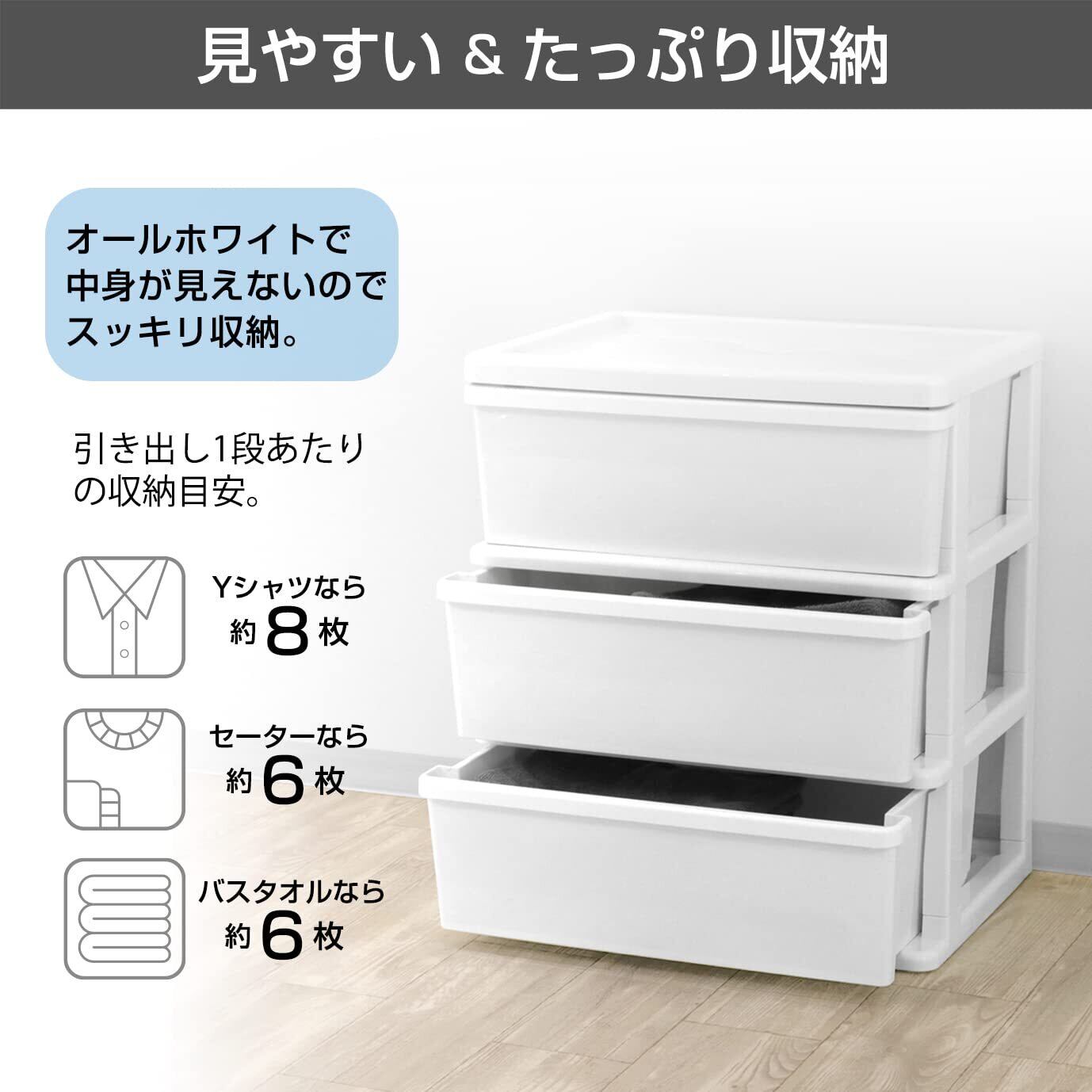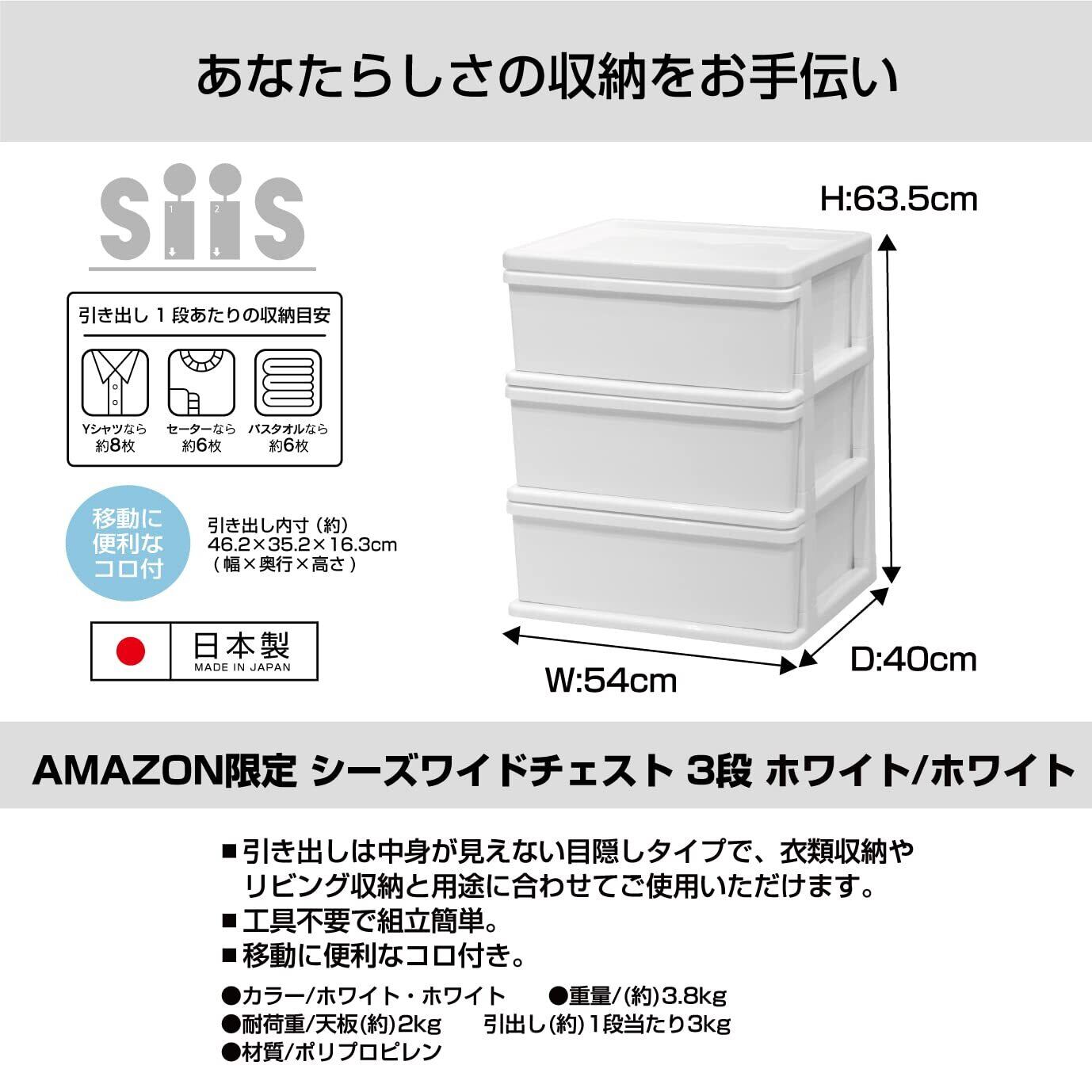 JEJアステージ(JEJ Astage) 収納チェスト シーズワイド 3段 ポリプロピレン (PP) ホワイト/ホワイト 日本製 簡単組み立て 幅54×奥行40×高さ63.5cm