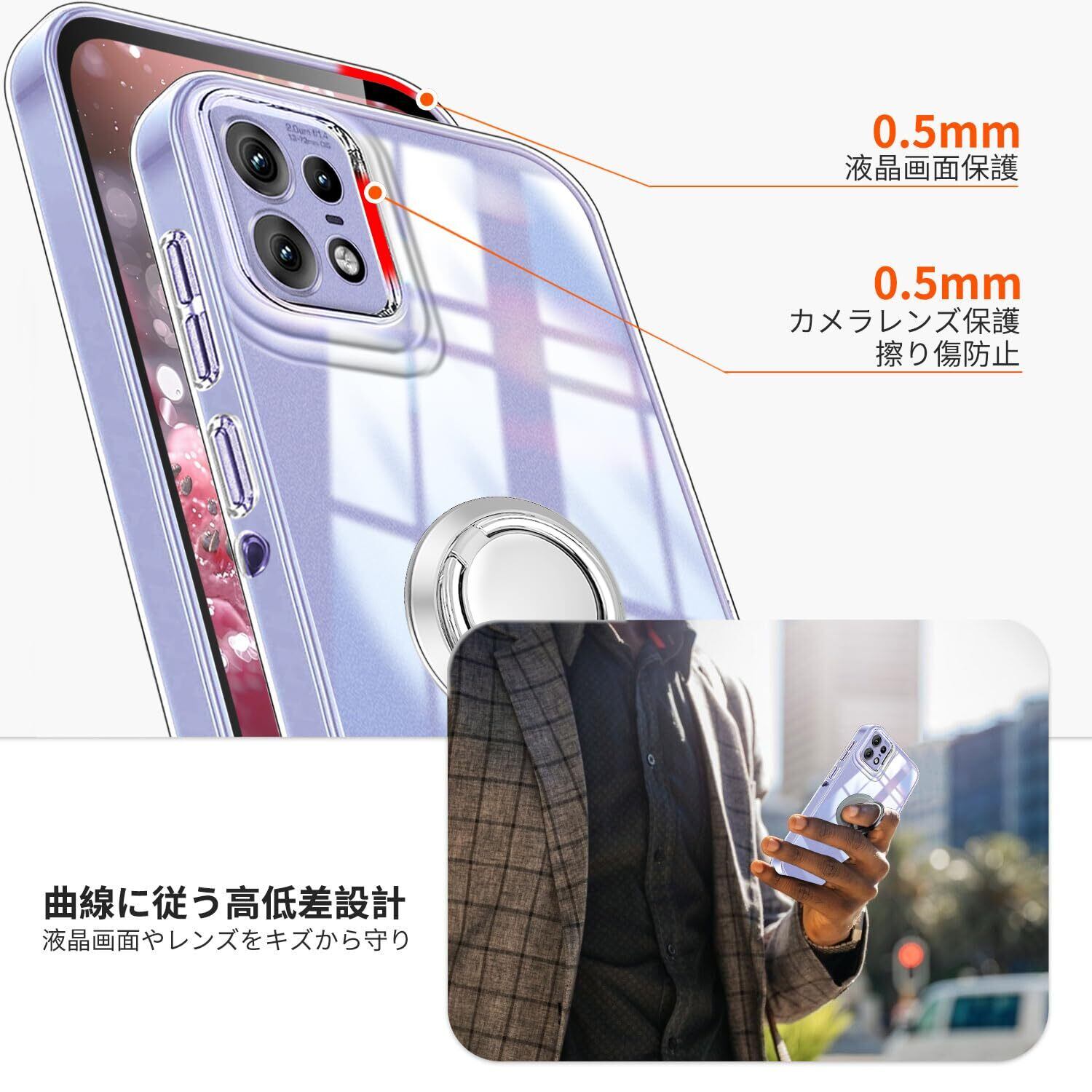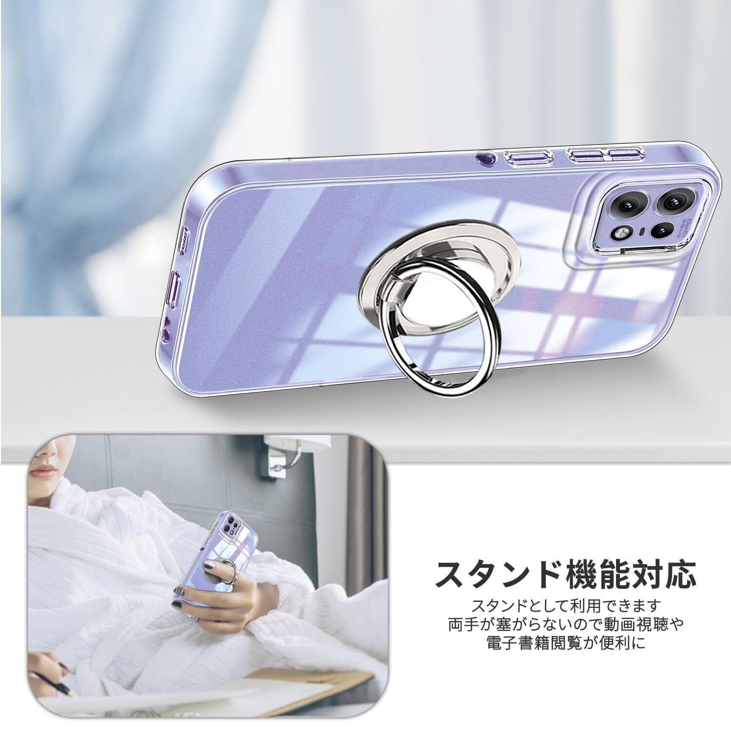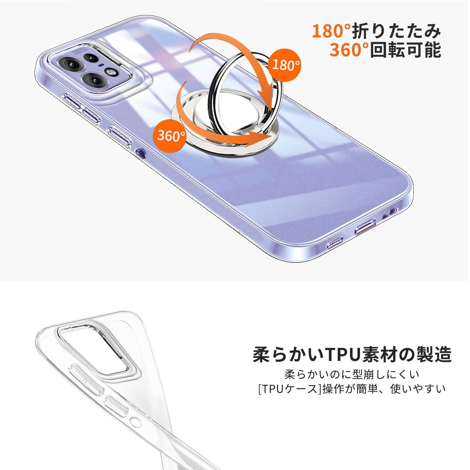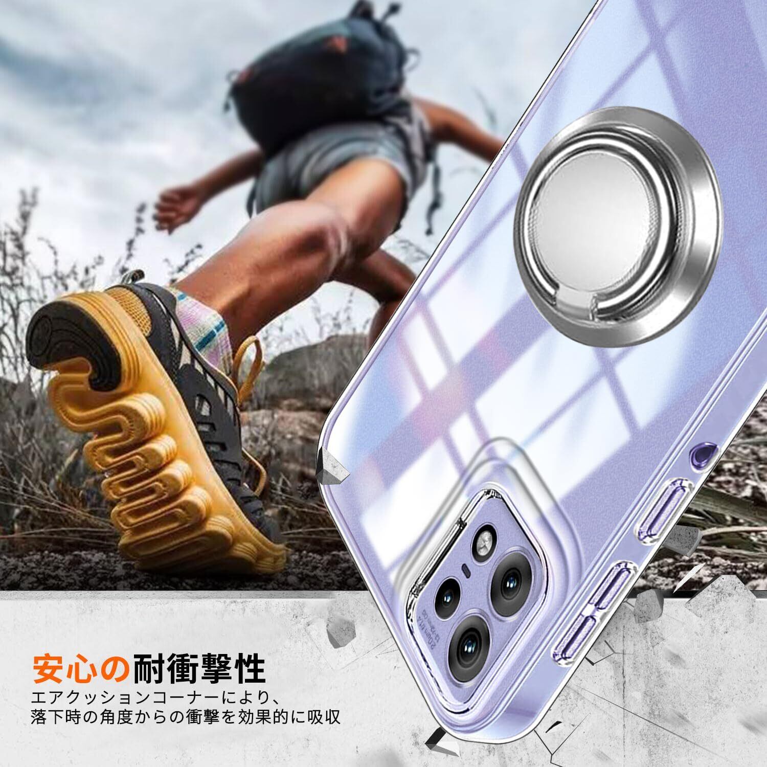 Motorola Edge 50 Pro ケース クリア リング付き TPU Edge 50s Pro カバー 専用 黄変防止 耐衝撃 薄型 ケース 車載ホルダー対応 滑り止め 落下防止