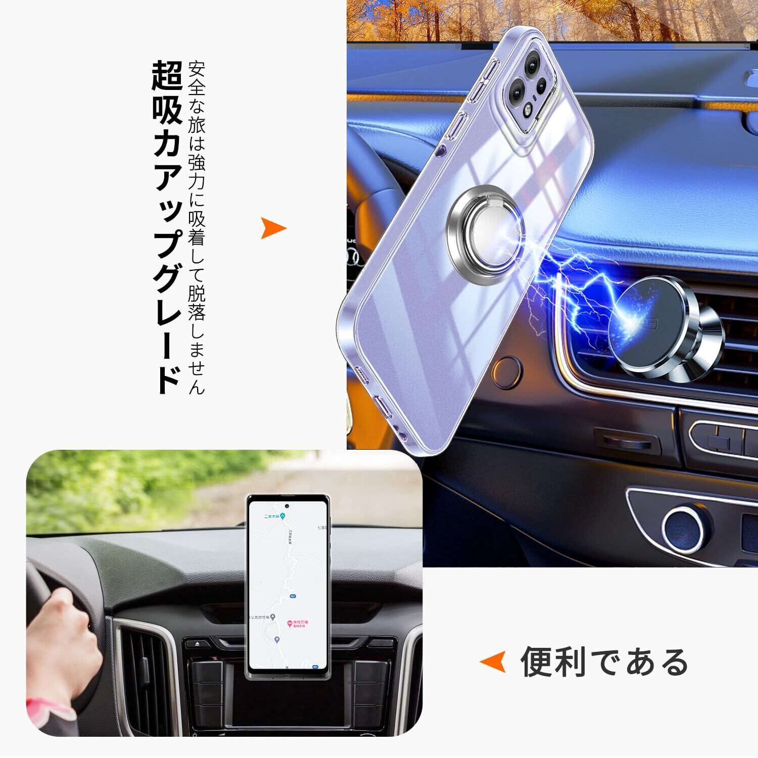 【車載ホルダー対応】マグネット対応金属板が付き、マグネット式の車載ホルダーに強く吸着します。車の磁石支持して使用されて、磁力があるの場合にスマホ等をバッチリ固定します。
