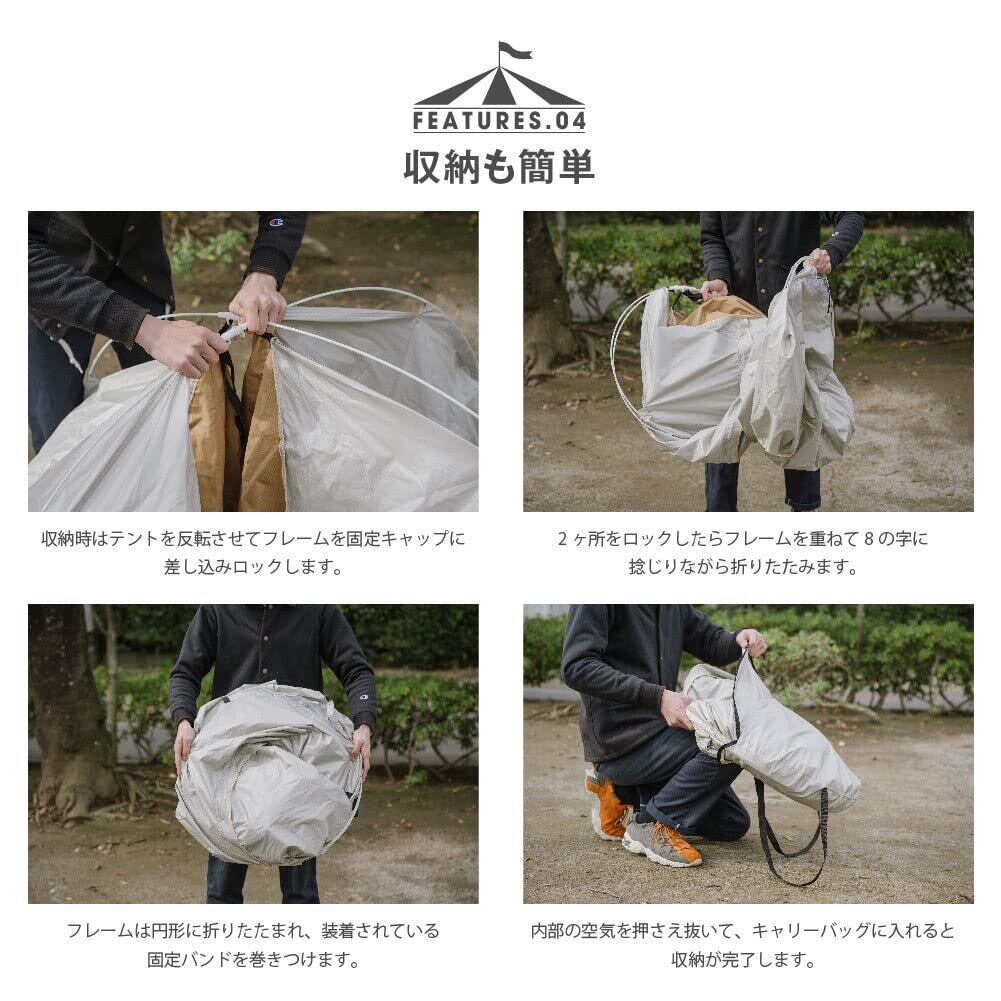 ワンタッチテント キャンプテント 2人用 ワンタッチテント UVカット加工 簡単設営 ポップアップテント テント 折りたたみ 軽量 防風 防水 耐水圧2000mm 収納袋付き アウトドア キャンプ テント 防災グッズ sl-zp150 (アイボリー)