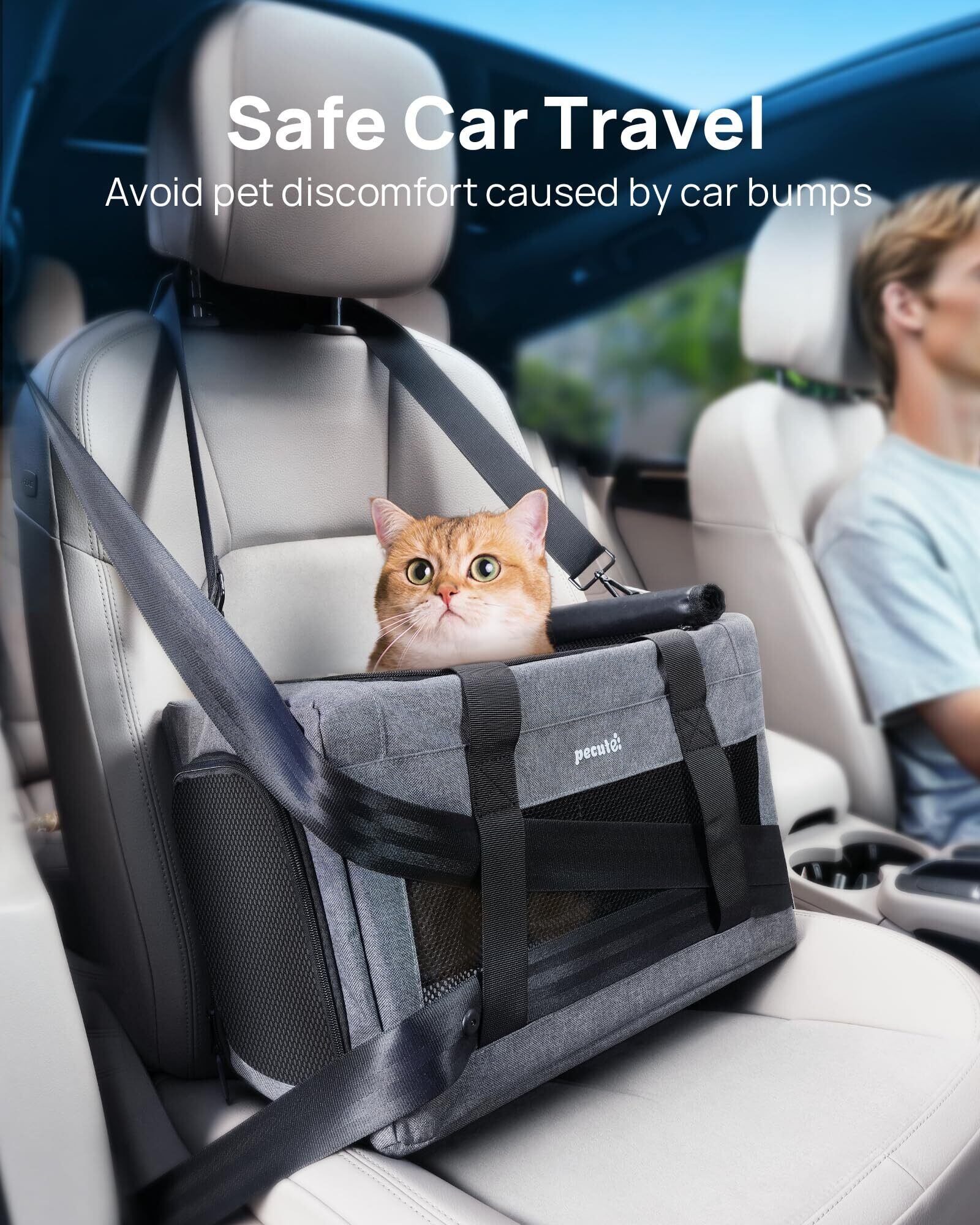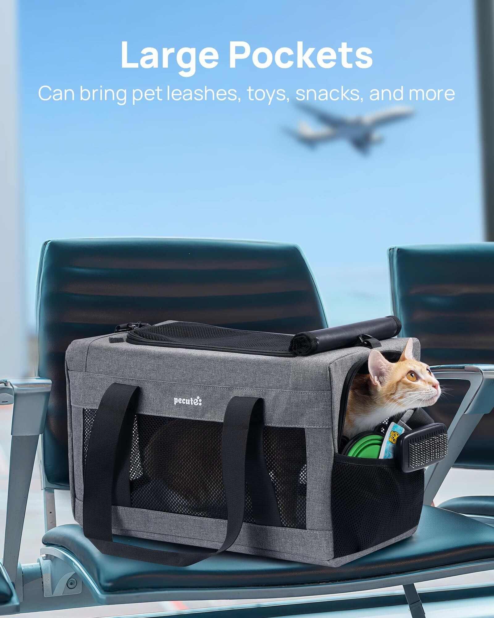 Pecute ペットキャリー 猫キャリー バッグ 手提げ 猫 キャリー ショルダー 猫 きゃりーバッグ 猫 ウサギ 小型犬 小動物用 リュック 通気性 折りたたみ お出かけ ドライブ 旅行 通院 防災 避難用 ライトグレー