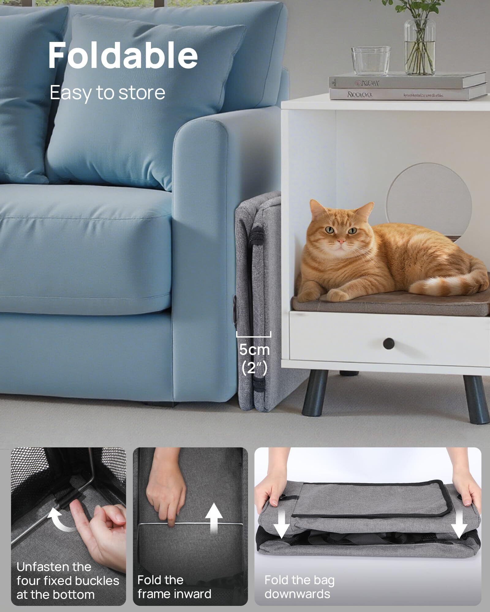 【安定して快適】:多入口デザインで、猫用キャリーの上部と側面の開口部からペットが出入りしやすいです。また、側面には小さな扉があり、ペットの餌やりや安心させるのに便利です。冬と夏のデュアルユース生地は、季節の制約を打ち破り、ペットバッグをすべての季節に使用できるようにします。 内蔵の柔らかいスポンジは快適性を高め、頑丈な木の板はより良い重量サポートを提供します。
