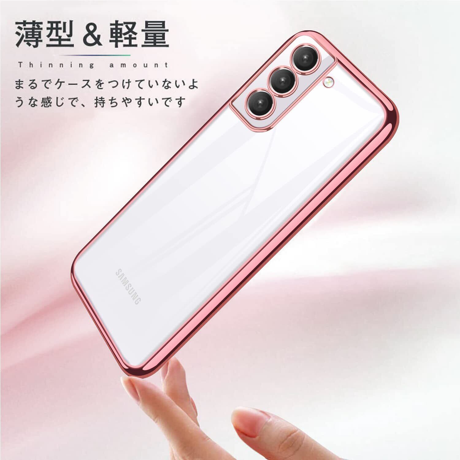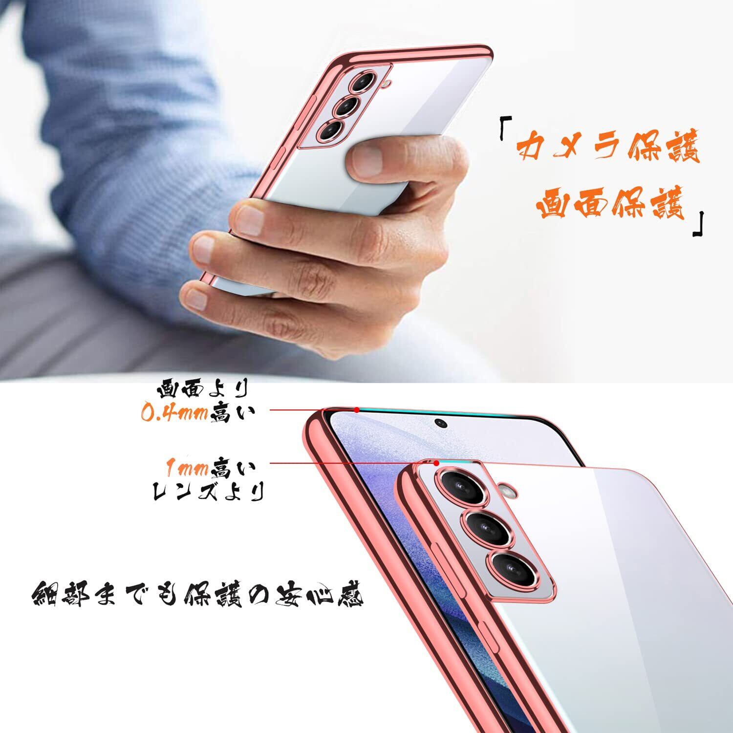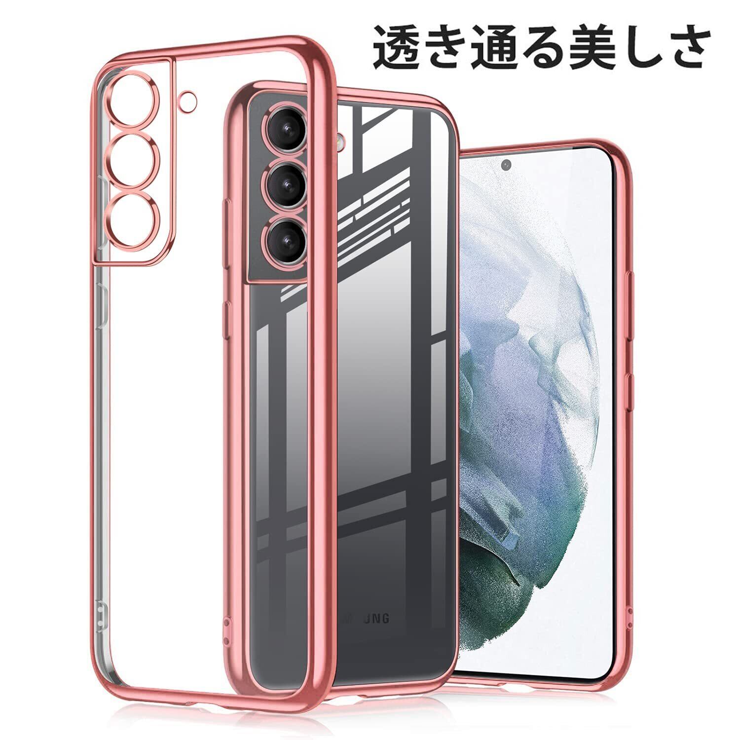 Galaxy S21 ケース クリア スマホケース ギャラクシーS21 5G ソフト シリコン tpu 透明 耐衝撃 軽量 レンズ保護 ストラップホール付き バラの金 メッキ加工 Samsung S21 SC-51B SCG09 カバー ローズゴールド